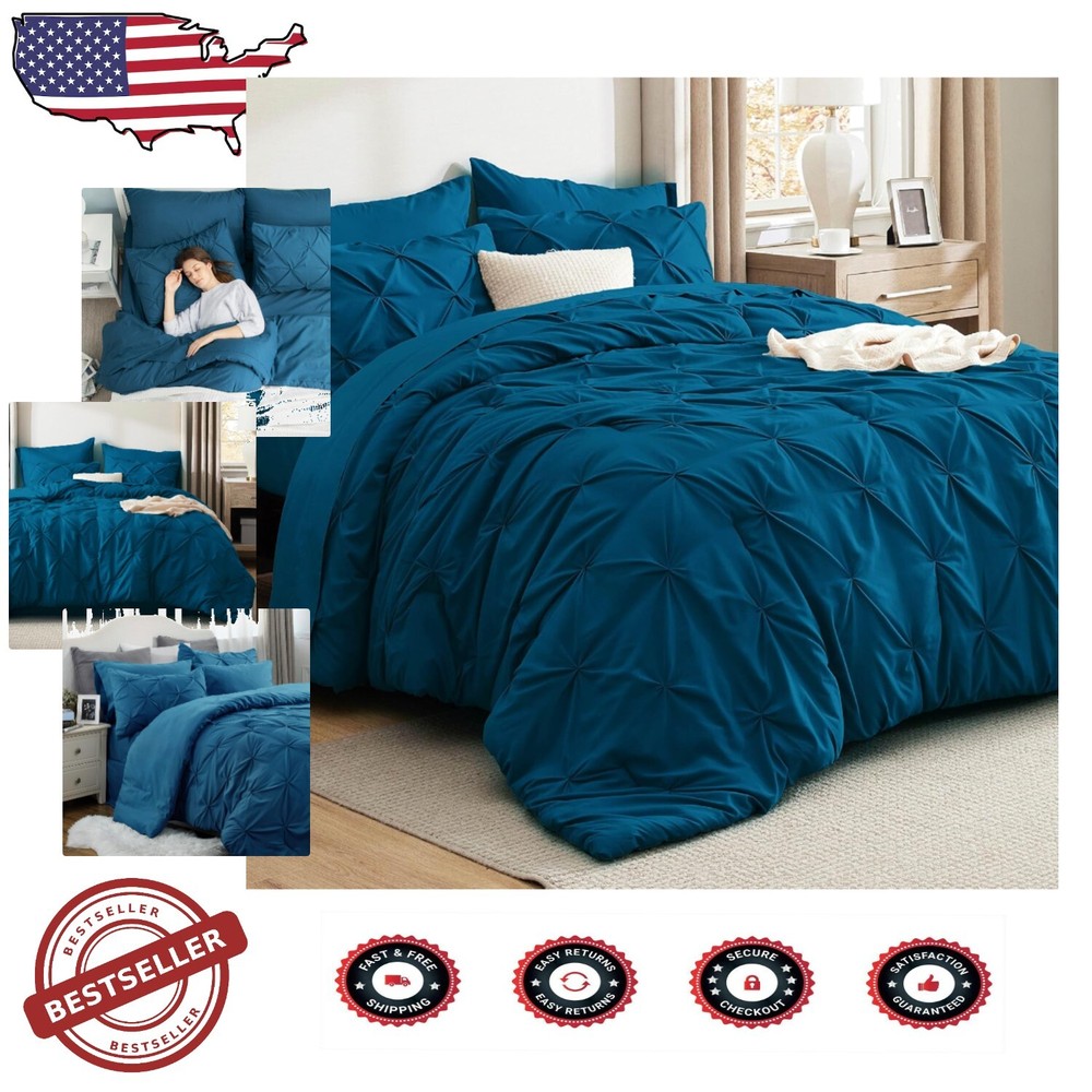 Elegant 5-Piece Twin Comforter Set in Teal - Pintuck Design for Cozy Bedrooms ‹ › ‹ › ‹ › ‹ › ‹ › ‹ › ‹ › ‹ › ‹ › ‹ › ‹ › Elegant 5-Piece Twin Comforter Set in Teal Pintuck Design for Cozy Bedrooms Elevate Your Space This stunning twin bedding set combines elegance and comfort, featuring a sophisticated pinch pleat design with a geometric pattern that instantly transforms your bedroom into a haven of style. Perfect Gift Delight your loved ones with the gift of elegant coziness. Ideal for special occasions such as Mother's Day, Valentine's Day, Christmas, or as a thoughtful gesture any time of year. Cloud-like Warmth Crafted with 's meticulously tested microfiber filling blend, ensuring the perfect harmony between weight and warmth. Create a tranquil and inviting sleeping space, reminiscent of floating on a cloud. Extra Soft Comfort Indulge in the luxurious feel of the brushed microfiber cover, designed to provide exceptional softness. Enjoy restful sleep without any rustling noise to disrupt your slumber. Effortless Maintenance Experience hassle-free care with premium microfiber fabric, resistant to fading, shrinking, and seam slippage. Simply machine wash separately in cold water on a gentle cycle and tumble dry low for enduring beauty. Inclusive Bedding Set This comprehensive 5-piece twin set includes: 1 Comforter (68" x 88") 1 Pillowcase (20" x 30") 1 Pillow Sham (20" x 26" + 2" Overlay) 1 Fitted Sheet (39" x 75" + 14" Deep) 1 Flat Sheet (66" x 96") Why Choose Our Twin Comforter Set? Transform your bedroom into a luxurious retreat with this Elegant 5-Piece Twin Comforter Set in Teal. Embracing warmth, softness, and easy care, it’s the ideal choice for a stylish and comfortable sleep experience. Treat yourself or someone special to this exquisite bedding ensemble today! Shipping Free & Fast Shipping - We offer free shipping to most of the USA with a normal delivery time of 3-7 days. However, due to the current situation, additional delivery time (up to 3 weeks) may be required for some items. Alternative Carriers - We may use alternative carriers (e.g. USPS, FedEx, UPS, etc.) to ensure your package arrives safely and on time. Due to the use of multiple carriers, we are unable to provide a tracking number automatically. Handling Time - Orders are processed and shipped within 1-2 business days of receiving cleared payment. Shipping Restrictions - Shipping to Alaska, Hawaii, Puerto Rico, Guam, and other US territories may incur shipping charges or delivery restrictions. Please contact us before ordering, or your order can be refunded/cancelled. State Restrictions - There may be restrictions based on your state of purchase. For example, certain items may not be shipped to California due to state regulations. Contact for Tracking Updates - If you require tracking updates or have any concerns about the delivery of your order, please feel free to contact us, and we will be happy to assist you. Return 30-Day Hassle-Free Returns - We want you to be completely satisfied with your purchase. If you are not, you can return the item within 30 days of receiving it for a full refund or exchange. Easy Return Process - To start a return, simply contact us and we will provide you with a prepaid return shipping label and detailed instructions. Restocking Fee - There are no restocking fees for returns. However, the buyer is responsible for return shipping costs if the return is not due to a seller's error. Refund Processing Time - Refunds will be processed within 5 business days of receiving the returned item in its original condition. Payment We accept all major credit cards, PayPal, and Apple Pay for your convenience. Your payment information is secure and encrypted to ensure a safe and seamless transaction. Please complete your payment within 3 days of purchase to avoid any delays in shipping. Feedback Your feedback is extremely important to us. We strive to provide the best products and customer service possible. If you are satisfied with your purchase, please take a moment to leave us a positive review. If you have any concerns or issues with your order, please contact us before leaving negative feedback. We are committed to resolving any problems and ensuring your satisfaction. Contact Us If you have any questions or concerns, please feel free to reach out to our customer support team. You can contact us through the eBay messaging system. We are available Monday to Friday, 9:00 am to 5:00 pm EST, and we will do our best to respond to your inquiry within 24 hours. Buy it now and enjoy a pleasant shopping experience! UPC: Not Set Model: Pintuck Set Includes: Comforter,Fitted Sheet,Flat Sheet,Pillowcase,Pillow Sham Material: Polyester,100% Polyester Features: Lightweight,Easy Care,Extra Soft Character: Not Set Theme: Modern Care Instructions: Do Not Bleach,Machine Wash Department: Unisex Baby & Toddler,Kids,Teens,Adults Room: Bedroom Labels & Certifications: Not Set Size: Twin Type: Comforter Set Brand: Unbranded Color: Teal Fill Material: Polyester Pattern: Geometric Item Width: Not Set Item Length: Not Set MPN: Not Set Character Family: Not Set Number of Items in Set: 5 Insulation: All Seasons Style: Modern Season: All Country/Region of Manufacture: Not Set Closure Type: No Closure Thread Count: 200 or Less Drop Length: Not Set GSM (Grams per Square Meter): 150 to 300 Product Line: Not Set Personalize: Not Set