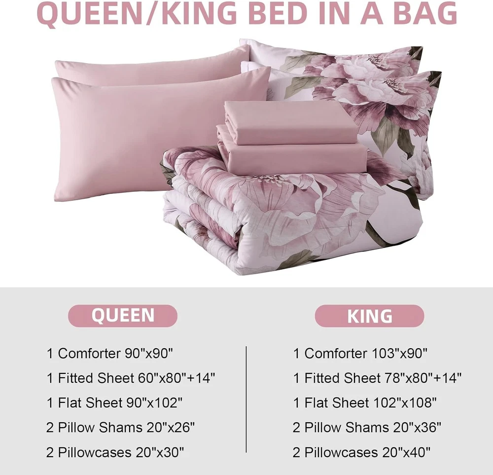 Elegant 7-Piece Pink Floral King Comforter Set - Soft Microfiber for All Seasons ‹ › ‹ › ‹ › ‹ › ‹ › ‹ › ‹ › ‹ › ‹ › Elegant 7-Piece Pink Floral King Comforter Set Transform your bedroom into a serene sanctuary with our exquisite comforter set. Features: Elegant Floral Design: This stunning pink floral comforter features vivid botanical flowers and leaves against a soft light pink background, infusing your space with the breath of spring all round. Luxurious Softness: Crafted from 100% high-quality microfiber, this comforter set is fluffy, breathable, and lightweight, ensuring a cozy and restful sleep every night. Complete Set: Enjoy a complete 7-piece king bed-in-a-bag set, which includes: 1 Floral Comforter (90" x 103") 1 Flat Sheet (102" x 108") 1 Fitted Sheet (78" x 80" + 14") 2 Pillow Shams (20" x 36") 2 Pillowcases (20" x 40") Exquisite Craftsmanship: Made with polyester filling, this comforter is soft, warm, and resilient. Excellent stitching technology prevents shifting and clumping, ensuring long-lasting quality. Care Instructions: Machine washable in cold water on a gentle cycle and tumble dry on low heat. Avoid bleach. If packaged in a vacuum bag, simply expose it to sunlight for a few hours and tap gently to re-fluff. Why Choose Our Comforter Set? Indulge in the delicate elegance of our 7-Piece Pink Floral King Comforter Set, designed to elevate your bedroom decor while providing warmth and comfort. Ideal for all seasons, its stylish aesthetic compliments both master and guest rooms, bringing life and vibrancy to any space. Discover the perfect blend of luxury and practicality with incredible softness that beckons you to experience lavish relaxation. Make a statement and envelop yourself in beauty by choosing our exquisite comforter set for your home. Upgrade your bedroom today! Shipping Free & Fast Shipping - We offer free shipping to most of the USA with a normal delivery time of 3-7 days. However, due to the current situation, additional delivery time (up to 3 weeks) may be required for some items. Alternative Carriers - We may use alternative carriers (e.g. USPS, FedEx, UPS, etc.) to ensure your package arrives safely and on time. Due to the use of multiple carriers, we are unable to provide a tracking number automatically. Handling Time - Orders are processed and shipped within 1-2 business days of receiving cleared payment. Shipping Restrictions - Shipping to Alaska, Hawaii, Puerto Rico, Guam, and other US territories may incur shipping charges or delivery restrictions. Please contact us before ordering, or your order can be refunded/cancelled. State Restrictions - There may be restrictions based on your state of purchase. For example, certain items may not be shipped to California due to state regulations. Contact for Tracking Updates - If you require tracking updates or have any concerns about the delivery of your order, please feel free to contact us, and we will be happy to assist you. Return 30-Day Hassle-Free Returns - We want you to be completely satisfied with your purchase. If you are not, you can return the item within 30 days of receiving it for a full refund or exchange. Easy Return Process - To start a return, simply contact us and we will provide you with a prepaid return shipping label and detailed instructions. Restocking Fee - There are no restocking fees for returns. However, the buyer is responsible for return shipping costs if the return is not due to a seller's error. Refund Processing Time - Refunds will be processed within 5 business days of receiving the returned item in its condition. Payment We accept all major credit cards, PayPal, and Apple Pay for your convenience. Your payment information is secure and encrypted to ensure a safe and seamless transaction. Please complete your payment within 3 days of purchase to avoid any delays in shipping. Feedback Your feedback is extremely important to us. We strive to provide the best products and customer service possible. If you are satisfied with your purchase, please take a moment to leave us a positive review. If you have any concerns or issues with your order, please contact us before leaving negative feedback. We are committed to resolving any problems and ensuring your satisfaction. Contact Us If you have any questions or concerns, please feel free to out to our customer support team. You can contact us through the eBay messaging system. We are available Monday to Friday, 9:00 am to 5:00 pm EST, and we will do our best to respond to your inquiry within 24 hours. Buy it now and enjoy a pleasant shopping experience! Set Includes: Comforter,Fitted Sheet,Flat Sheet,Pillowcase,Pillow Sham Material: Microfiber,Polyester Features: Breathable,Lightweight,Soft,Cozy Theme: Seasonal Care Instructions: Do Not Bleach,Machine Wash,Machine Wash Cold,Tumble Dry on Low Heat Department: Unisex Baby & Toddler,Kids,Teens,Adults Room: Bedroom,Guest Room Size: King Type: Comforter Set Color: Pink Fill Material: Polyester Pattern: Floral Insulation: All Seasons Number of Items in Set: 7 Style: Farmhouse Season: All Closure Type: No Closure Thread Count: Unknown GSM (Grams per Square Meter): Unknown