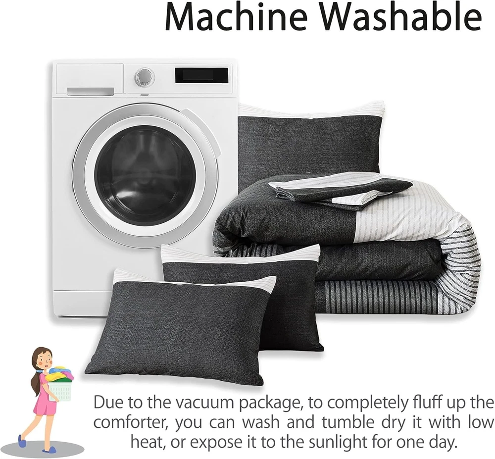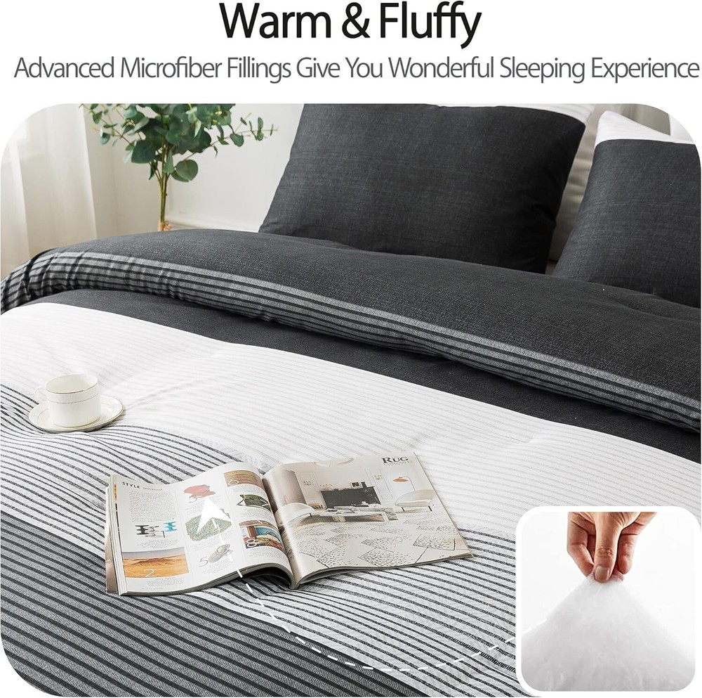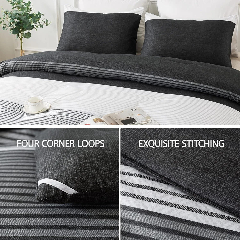 Elegant Black, White & Gray King Comforter Set - Weather-Resistant & Fluffy ‹ › ‹ › ‹ › ‹ › ‹ › ‹ › ‹ › ‹ › ‹ › Elegant Black, White & Gray King Comforter Set -Weather-Resistant & Fluffy Features: Striped Pattern: Concise stripe pattern redesigned with a modern and elegant 3-color patchwork, adding a sophisticated flair to any bedroom. Soft as a Cloud: Crafted with double brushed microfiber for a super soft, down alternative comforter that's breathable and skin-friendly. Adequate Filling: Advanced 3D spiral distributed microfiber filling ensures lightweight fluffiness while accommodating various sleeping postures. Durable & Easy Care: High-density smooth surface is resistant to tearing and fading, machine washable for your convenience. Complete Set: Includes one king comforter (104x90 inches) with corner loops for duvet cover attachment and two pillowcases (20x36 inches) with an elegant envelope closure. Benefits: Transform your bedroom with a sophisticated and modern look. Indulge in the luxurious softness and comfort that enhances your sleep experience in all seasons. The fluffy filling provides exceptional support while remaining lightweight, ensuring a cozy night’s sleep. Durable and easy to care for, providing long-lasting use and effortless maintenance. Perfect gift option for those seeking elegance and comfort in home decor. Why choose our King Comforter Set? Your bedroom deserves an upgrade, and our Elegant Black, White & Gray King Comforter Set is the perfect choice. With its unique design and superior comfort, this set promises to revive your space while enhancing your sleeping experience. The exceptional softness against your skin and the thoughtfully designed construction make it an essential addition to your sanctuary. Don’t settle for ordinary—elevate your comfort and style with this exquisite comforter set. Order yours today and transform your bedroom into a haven of luxury. Shipping Free & Fast Shipping - We offer free shipping to most of the USA with a normal delivery time of 3-7 days. However, due to the current situation, additional delivery time (up to 3 weeks) may be required for some items. Alternative Carriers - We may use alternative carriers (e.g. USPS, FedEx, UPS, etc.) to ensure your package arrives safely and on time. Due to the use of multiple carriers, we are unable to provide a tracking number automatically. Handling Time - Orders are processed and shipped within 1-2 business days of receiving cleared payment. Shipping Restrictions - Shipping to Alaska, Hawaii, Puerto Rico, Guam, and other US territories may incur shipping charges or delivery restrictions. Please contact us before ordering, or your order can be refunded/cancelled. State Restrictions - There may be restrictions based on your state of purchase. For example, certain items may not be shipped to California due to state regulations. Contact for Tracking Updates - If you require tracking updates or have any concerns about the delivery of your order, please feel free to contact us, and we will be happy to assist you. Return 30-Day Hassle-Free Returns - We want you to be completely satisfied with your purchase. If you are not, you can return the item within 30 days of receiving it for a full refund or exchange. Easy Return Process - To start a return, simply contact us and we will provide you with a prepaid return shipping label and detailed instructions. Restocking Fee - There are no restocking fees for returns. However, the buyer is responsible for return shipping costs if the return is not due to a seller's error. Refund Processing Time - Refunds will be processed within 5 business days of receiving the returned item in its condition. Payment We accept all major credit cards, PayPal, and Apple Pay for your convenience. Your payment information is secure and encrypted to ensure a safe and seamless transaction. Please complete your payment within 3 days of purchase to avoid any delays in shipping. Feedback Your feedback is extremely important to us. We strive to provide the best products and customer service possible. If you are satisfied with your purchase, please take a moment to leave us a positive review. If you have any concerns or issues with your order, please contact us before leaving negative feedback. We are committed to resolving any problems and ensuring your satisfaction. Contact Us If you have any questions or concerns, please feel free to out to our customer support team. You can contact us through the eBay messaging system. We are available Monday to Friday, 9:00 am to 5:00 pm EST, and we will do our best to respond to your inquiry within 24 hours. Buy it now and enjoy a pleasant shopping experience! Set Includes: Comforter,Pillowcase Material: Microfiber,soft brushed microfiber Features: Down Alternative,super soft,breathable,comfortable,lightweight,fluffy,skin-friendly,durable,easy care Theme: Striped, Modern Care Instructions: Machine Wash,Gentle cycle,Air dry,Tumble dry low heat,Do not bleach,Do not iron,Wash before first use Department: Unisex Baby & Toddler,Kids,Teens,Adults Room: Bedroom Size: King Type: Comforter Set Color: Black Fill Material: Microfiber Pattern: Striped Insulation: All Seasons Number of Items in Set: 3 Style: Modern Season: All Closure Type: Envelope Thread Count: 200 or Less GSM (Grams per Square Meter): 301 to 450