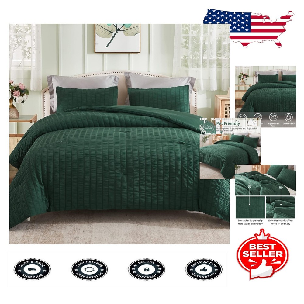 Elegant Dark Green Seersucker King Comforter Set with Pillowcases - Soft & Cozy ‹ › ‹ › ‹ › ‹ › ‹ › ‹ › ‹ › ‹ › ‹ › Elegant Dark Green Seersucker King Comforter Set with Pillowcases Chic Seersucker Design: Are you tired of smooth, plain comforter sets without any design? This delicate and beautiful seersucker texture is simple yet fashionable, instantly captivating your heart with its stunning pattern. Comfortable and Soft: Made from 100% washed microfiber, this dark green comforter set offers unparalleled softness. The 300 GSM filling envelops you in warmth and coziness throughout the seasons, proving to be 40% more durable and breathable than ordinary materials. Lightweight and Fluffy: With its king size luxury, you'll experience a feather-light embrace, as if you're sleeping on a cloud. The expertly crafted fabric ensures a smooth touch, providing comfort like no other. Easy Care and Pet Friendly: Convenience is key! This comforter set is machine washable on a gentle cycle with cold water. Easily air dry or tumble dry on low heat; remember, no bleach! Plus, our lightweight bed comforter set repels pet hair, making it perfect for pet lovers. Size & Measurement: The seersucker comforter set in king size includes 1 Comforter (104x90 inches) and 2 Pillowcases (20x36 inches). It can serve beautifully as a duvet insert or as a stand-alone comforter. DREAMY SEERSUCKER: EMBELLISH YOUR SWEET DREAMS Searching for the perfect gift or a cozy addition to your home? With its luxurious and trendy design, this seersucker comforter set is an exquisite choice. Inspired by elegance, quality craftsmanship, and fine fabrics, our design team aims to help every customer drift into a realm of sweet dreams. Shipping Free & Fast Shipping - We offer free shipping to most of the USA with a normal delivery time of 3-7 days. However, due to the current situation, additional delivery time (up to 3 weeks) may be required for some items. Alternative Carriers - We may use alternative carriers (e.g. USPS, FedEx, UPS, etc.) to ensure your package arrives safely and on time. Due to the use of multiple carriers, we are unable to provide a tracking number automatically. Handling Time - Orders are processed and shipped within 1-2 business days of receiving cleared payment. Shipping Restrictions - Shipping to Alaska, Hawaii, Puerto Rico, Guam, and other US territories may incur shipping charges or delivery restrictions. Please contact us before ordering, or your order can be refunded/cancelled. State Restrictions - There may be restrictions based on your state of purchase. For example, certain items may not be shipped to California due to state regulations. Contact for Tracking Updates - If you require tracking updates or have any concerns about the delivery of your order, please feel free to contact us, and we will be happy to assist you. Return 30-Day Hassle-Free Returns - We want you to be completely satisfied with your purchase. If you are not, you can return the item within 30 days of receiving it for a full refund or exchange. Easy Return Process - To start a return, simply contact us and we will provide you with a prepaid return shipping label and detailed instructions. Restocking Fee - There are no restocking fees for returns. However, the buyer is responsible for return shipping costs if the return is not due to a seller's error. Refund Processing Time - Refunds will be processed within 5 business days of receiving the returned item in its condition. Payment We accept all major credit cards, PayPal, and Apple Pay for your convenience. Your payment information is secure and encrypted to ensure a safe and seamless transaction. Please complete your payment within 3 days of purchase to avoid any delays in shipping. Feedback Your feedback is extremely important to us. We strive to provide the best products and customer service possible. If you are satisfied with your purchase, please take a moment to leave us a positive review. If you have any concerns or issues with your order, please contact us before leaving negative feedback. We are committed to resolving any problems and ensuring your satisfaction. Contact Us If you have any questions or concerns, please feel free to out to our customer support team. You can contact us through the eBay messaging system. We are available Monday to Friday, 9:00 am to 5:00 pm EST, and we will do our best to respond to your inquiry within 24 hours. Buy it now and enjoy a pleasant shopping experience! Set Includes: Comforter,Pillowcase Material: Microfiber,Seersucker Features: Breathable,Lightweight,Machine Wash,Pet Friendly Character: Darkness Theme: Love Care Instructions: Do Not Bleach,Machine Wash Department: Adults Room: Bedroom Size: King Type: Comforter Set Color: Dark Green Fill Material: Microfiber Pattern: Solid Insulation: All Seasons Number of Items in Set: 3 Style: Chic Season: All Closure Type: No Closure Thread Count: Unknown GSM (Grams per Square Meter): 300