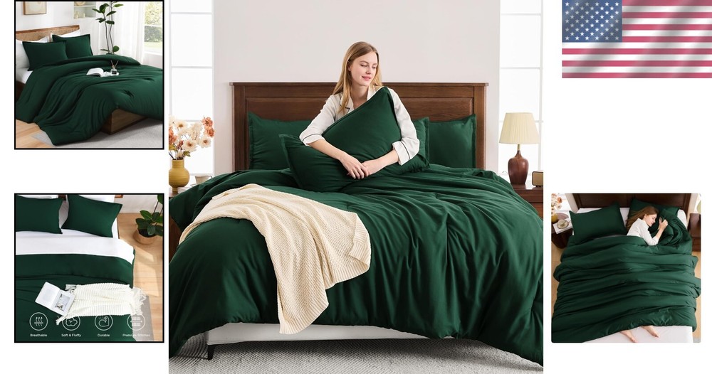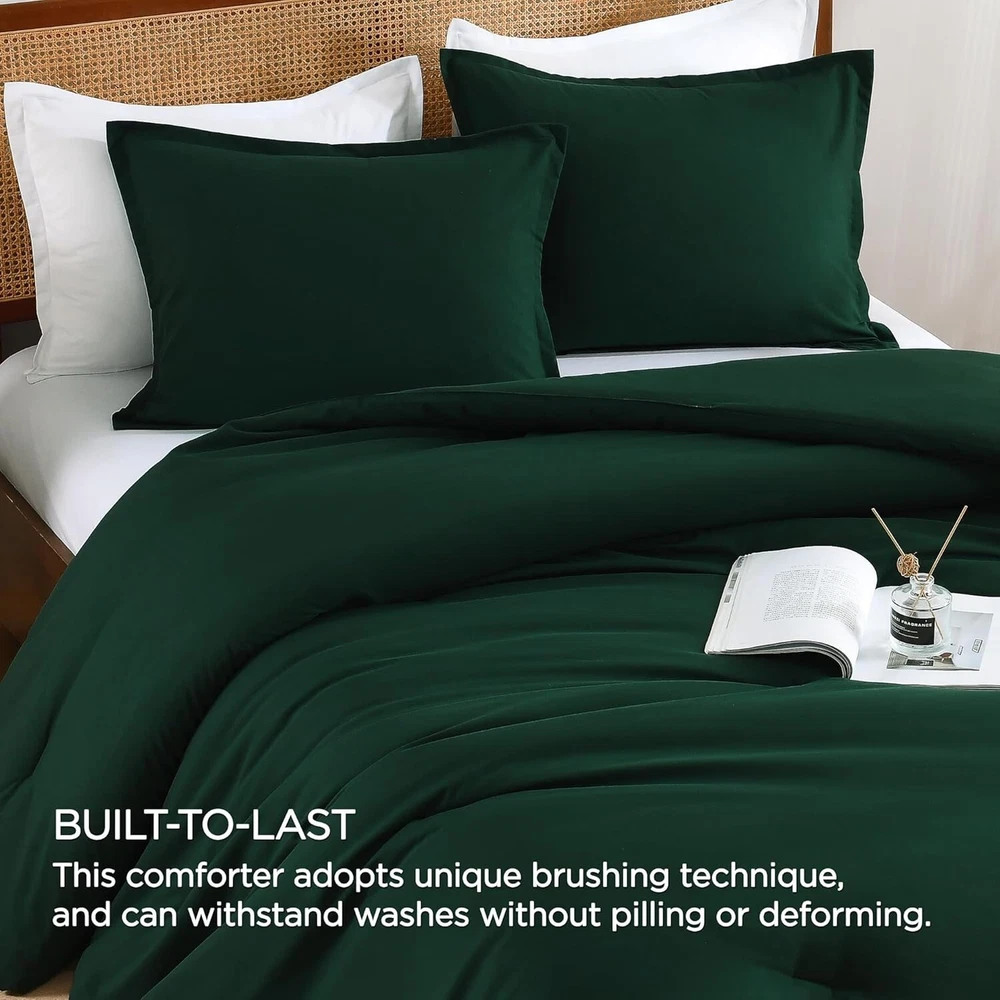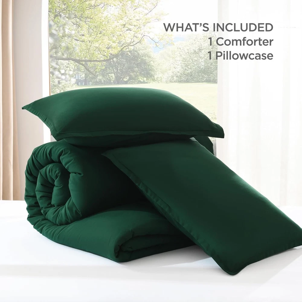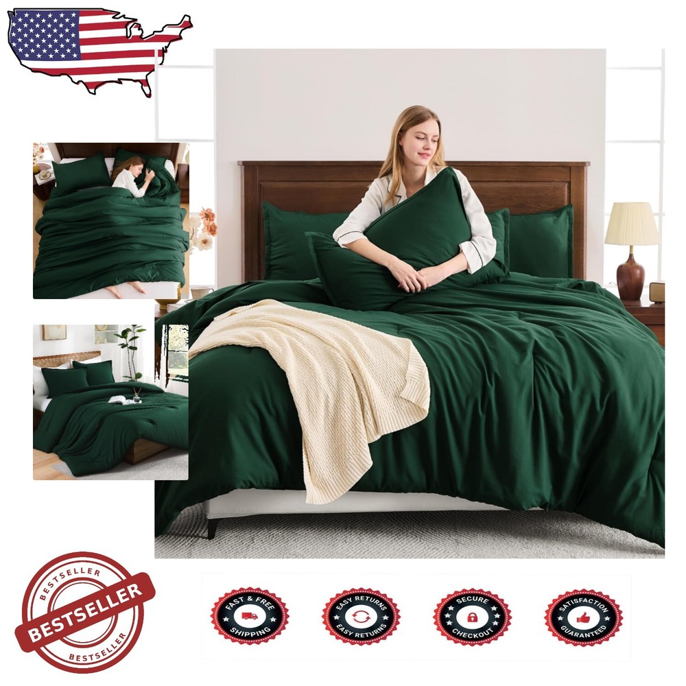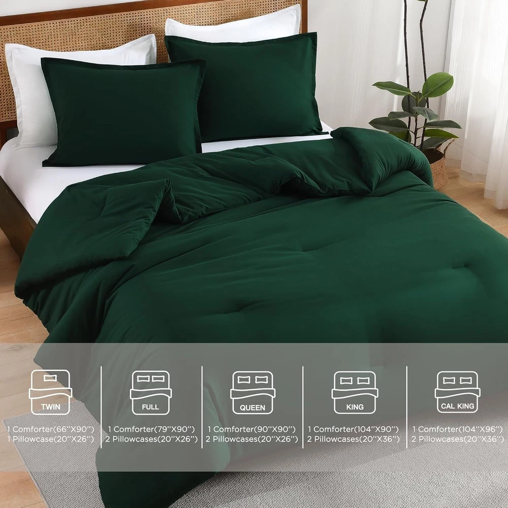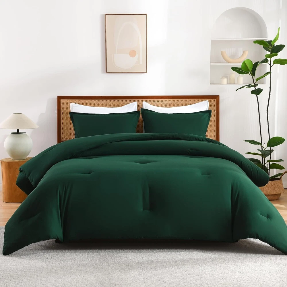 This comforter set is incredibly soft and cozy—perfect for all seasons! The dark green color adds a stylish, elegant touch to any bedroom. Lightweight yet warm, the microfiber fabric feels luxurious and stays cool. Plus, it's easy to care for—just toss it in the wash. Love how comfortable and durable it is! Great value for the quality.