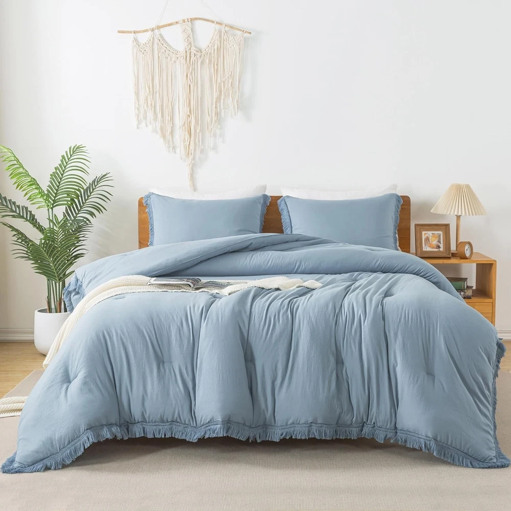 Elegant Grayish Blue 3-Piece Comforter Set - Boho Tassel Design for Cozy Living ‹ › ‹ › ‹ › ‹ › ‹ › ‹ › ‹ › ‹ › ‹ › Elegant Grayish Blue 3-Piece Comforter Set Boho Tassel Design for Cozy Living Features: Boho Tassel Design: Adorned with handmade tassels on the edges, this comforter set brings a charming and youthful appeal to your bedroom. Ultra Soft Fabric: Crafted from microfiber, this comforter is super soft, breathable, and incredibly comfortable, making it ideal for all seasons. What You Will Get: This luxurious set includes 1 comforter and 2 matching tassel pillowcases. Exquisite Craftsmanship: Features hidden stitching to maintain aesthetic appeal while keeping the filling securely in place. Care Instructions: Machine washable on a gentle cycle in cold water; sun-dry for best results. Benefits: Easily transforms your bedroom, providing an elegant and trendy look. Perfect for -round comfort, keeping you warm in winter and cool in summer. Ensures high-quality sleep, helping you wake up refreshed and ready for the day. High-quality craftsmanship ensures durability and long-lasting use. Tassels add a touch of whimsy and warmth to your bedding ensemble. Why Choose Our Elegant Grayish Blue Comforter Set? Revitalize your space with the Elegant Grayish Blue 3-Piece Comforter Set that blends sophistication and comfort seamlessly. The stunning boho tassel design adds an artistic flair, ensuring a delightful aesthetic. Made from materials, this set is as functional as it is beautiful, bringing you both warmth and style. Elevate your bedroom experience with this exquisite comforter set. Order yours today and discover the joy of luxurious sleep in an enchanting setting. Shipping Free & Fast Shipping - We offer free shipping to most of the USA with a normal delivery time of 3-7 days. However, due to the current situation, additional delivery time (up to 3 weeks) may be required for some items. Alternative Carriers - We may use alternative carriers (e.g. USPS, FedEx, UPS, etc.) to ensure your package arrives safely and on time. Due to the use of multiple carriers, we are unable to provide a tracking number automatically. Handling Time - Orders are processed and shipped within 1-2 business days of receiving cleared payment. Shipping Restrictions - Shipping to Alaska, Hawaii, Puerto Rico, Guam, and other US territories may incur shipping charges or delivery restrictions. Please contact us before ordering, or your order can be refunded/cancelled. State Restrictions - There may be restrictions based on your state of purchase. For example, certain items may not be shipped to California due to state regulations. Contact for Tracking Updates - If you require tracking updates or have any concerns about the delivery of your order, please feel free to contact us, and we will be happy to assist you. Return 30-Day Hassle-Free Returns - We want you to be completely satisfied with your purchase. If you are not, you can return the item within 30 days of receiving it for a full refund or exchange. Easy Return Process - To start a return, simply contact us and we will provide you with a prepaid return shipping label and detailed instructions. Restocking Fee - There are no restocking fees for returns. However, the buyer is responsible for return shipping costs if the return is not due to a seller's error. Refund Processing Time - Refunds will be processed within 5 business days of receiving the returned item in its condition. Payment We accept all major credit cards, PayPal, and Apple Pay for your convenience. Your payment information is secure and encrypted to ensure a safe and seamless transaction. Please complete your payment within 3 days of purchase to avoid any delays in shipping. Feedback Your feedback is extremely important to us. We strive to provide the best products and customer service possible. If you are satisfied with your purchase, please take a moment to leave us a positive review. If you have any concerns or issues with your order, please contact us before leaving negative feedback. We are committed to resolving any problems and ensuring your satisfaction. Contact Us If you have any questions or concerns, please feel free to out to our customer support team. You can contact us through the eBay messaging system. We are available Monday to Friday, 9:00 am to 5:00 pm EST, and we will do our best to respond to your inquiry within 24 hours. Buy it now and enjoy a pleasant shopping experience! Set Includes: Comforter,Pillowcase Material: Microfiber Features: Breathable,Lightweight,Soft,Warm Theme: Boho Care Instructions: Do Not Bleach,Machine Wash,Tumble Dry on Low Heat,Gentle Cycle in Cold Water Department: Adults Room: Bedroom Size: Full Type: Comforter Set Color: Grayish Blue Fill Material: Synthetic Pattern: Solid Insulation: All Seasons Number of Items in Set: 3 Style: Bohemian Season: All Closure Type: No Closure Thread Count: 201-400 GSM (Grams per Square Meter): 301 to 450