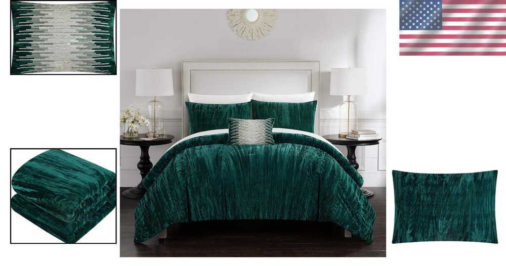Elegant King Size Crushed Velvet Comforter Set with Decorative Pillow Shams ‹ › ‹ › ‹ › ‹ › ‹ › ‹ › Elegant King Size Crushed Velvet Comforter Set Luxurious Velvet Fabric: This exquisitely designed comforter, expertly crafted with multidimensional textured crushed velvet on the face and super soft plush microfiber on the backing, promises an amazing night’s sleep. Down Alternative Hypoallergenic Filling: Stuffed with a premium hypoallergenic synthetic filling, this comforter is perfect for those with allergies, ensuring a restful sleep without irritation. Style and Comfort: Our fashion-forward comforter sets seamlessly combine style and function, elevating your bedding aesthetic while offering unparalleled comfort. Sophisticated Design: The rich, crinkle crushed velvet design with a solid matching color microfiber backing offers a sophisticated touch to your bedroom décor. Thoughtful Set Inclusion: Every set includes a king size comforter dimensions (104” x 92”), two design-coordinated pillow shams (20” x 36” + 2”), and a sequin decorative throw pillow (12” x 18”) for a complete makeover. Features & Benefits: Luxuriously Soft Feel: Experience luxurious comfort that minimizes tossing and turning, thanks to the soft, high-quality fabric used in this set. Hypoallergenic Materials: Ideal for allergy sufferers, our down alternative filling ensures you can sleep soundly without traditional down materials. Durability Guaranteed: Built to last, this comforter set features premium fabrics and expert stitching that withstands time and wears beautifully. Easy Maintenance: Dry clean preferred, but machine washable on a gentle cycle using cold water and tumble dried low for convenience and ease. Why Choose Our Elegant Comforter Set? Dare to transform your bedroom into a luxurious sanctuary with our Elegant King Size Crushed Velvet Comforter Set. Not only does it add a statement-making design to your space, but the careful craftsmanship ensures both comfort and style are at the forefront of your decor. Enjoy the blending of plush velvet and hypoallergenic materials, perfect for enhancing your relaxation experience. Elevate your sleep experience and embrace sophistication in every aspect—order your set today! Shipping Free & Fast Shipping - We offer free shipping to most of the USA with a normal delivery time of 3-7 days. However, due to the current situation, additional delivery time (up to 3 weeks) may be required for some items. Alternative Carriers - We may use alternative carriers (e.g. USPS, FedEx, UPS, etc.) to ensure your package arrives safely and on time. Due to the use of multiple carriers, we are unable to provide a tracking number automatically. Handling Time - Orders are processed and shipped within 1-2 business days of receiving cleared payment. Shipping Restrictions - Shipping to Alaska, Hawaii, Puerto Rico, Guam, and other US territories may incur shipping charges or delivery restrictions. Please contact us before ordering, or your order can be refunded/cancelled. State Restrictions - There may be restrictions based on your state of purchase. For example, certain items may not be shipped to California due to state regulations. Contact for Tracking Updates - If you require tracking updates or have any concerns about the delivery of your order, please feel free to contact us, and we will be happy to assist you. Return 30-Day Hassle-Free Returns - We want you to be completely satisfied with your purchase. If you are not, you can return the item within 30 days of receiving it for a full refund or exchange. Easy Return Process - To start a return, simply contact us and we will provide you with a prepaid return shipping label and detailed instructions. Restocking Fee - There are no restocking fees for returns. However, the buyer is responsible for return shipping costs if the return is not due to a seller's error. Refund Processing Time - Refunds will be processed within 5 business days of receiving the returned item in its original condition. Payment We accept all major credit cards, PayPal, and Apple Pay for your convenience. Your payment information is secure and encrypted to ensure a safe and seamless transaction. Please complete your payment within 3 days of purchase to avoid any delays in shipping. Feedback Your feedback is extremely important to us. We strive to provide the best products and customer service possible. If you are satisfied with your purchase, please take a moment to leave us a positive review. If you have any concerns or issues with your order, please contact us before leaving negative feedback. We are committed to resolving any problems and ensuring your satisfaction. Contact Us If you have any questions or concerns, please feel free to reach out to our customer support team. You can contact us through the eBay messaging system. We are available Monday to Friday, 9:00 am to 5:00 pm EST, and we will do our best to respond to your inquiry within 24 hours. Buy it now and enjoy a pleasant shopping experience! UPC: Not Set Model: Not Set Set Includes: Comforter,Pillow Shams,Sequin Decorative Pillow Material: Crinkle Crushed Velvet,Brushed Microfiber Features: Hypoallergenic,Soft Feel,Durable,Stylish,Comfortable Character: Not Set Theme: Fashion Care Instructions: Machine Wash,Machine Wash Cold,Dry Clean Preferred,Tumble Dry Low,Gentle Cycle Department: Adults Room: Bedroom Labels & Certifications: Not Set Size: King Type: Comforter Set Brand: Unbranded Color: Green Fill Material: Not Set Pattern: Solid Item Width: Not Set Item Length: Not Set MPN: Not Set Number of Items in Set: 4 Style: Contemporary Character Family: Not Set Insulation: All Seasons Season: All Country/Region of Manufacture: Not Set Closure Type: No Closure Thread Count: Not Specified Drop Length: Not Set GSM (Grams per Square Meter): Not Specified Product Line: Not Set Personalize: Not Set