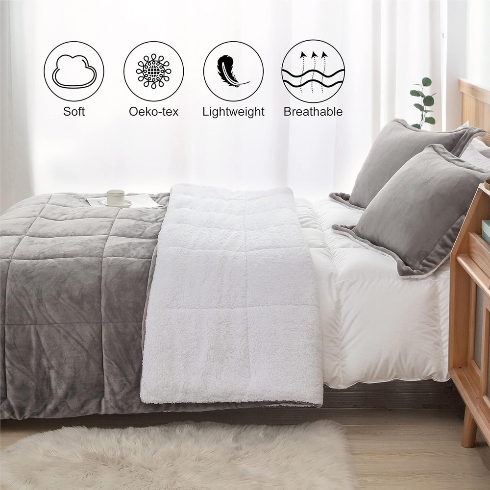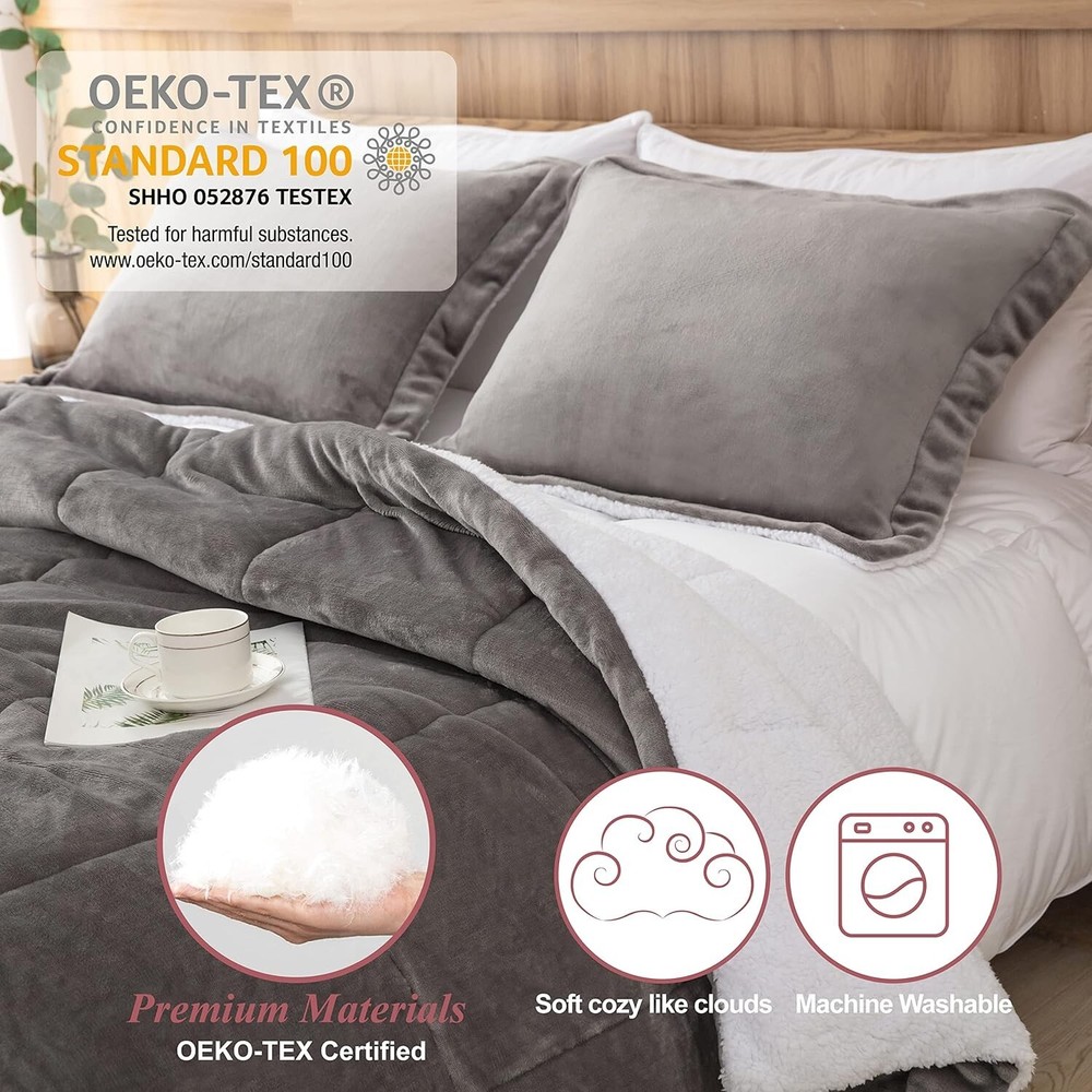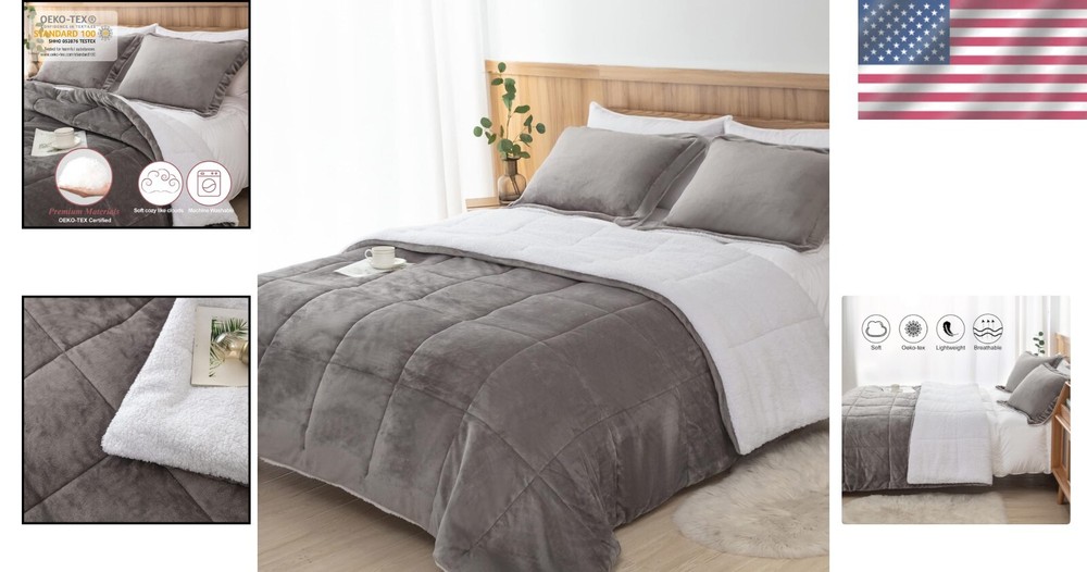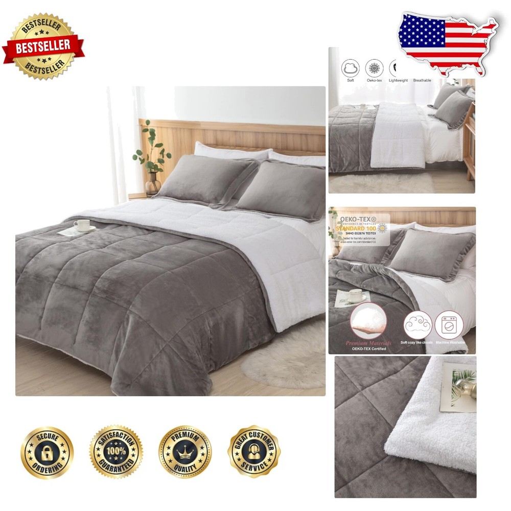 Elegant King Size Grey Sherpa Comforter and Pillow Shams Set for Cozy Nights < class="slides"> ‹ › ‹ › ‹ › ‹ › ‹ › ‹ › ‹ › ‹ › Elegant King Size Grey Sherpa Comforter and Pillow Shams Set Transform your sleeping experience with our luxurious comforter set, designed for cozy nights and a touch of elegance. Product Overview: Comfy down alternative Sherpa: One side crafted from plush sherpa fleece, the reverse is luxe micromink, ensuring warmth and comfort during the coldest nights. Soft and luxurious: Filled with lightweight microfiber, perfect for both spring and winter sleep. Experience the ultra-soft touch and see your bedroom come alive with its luxurious hues. 3 Piece Set: Includes 1 indulgently sized comforter (King: 104"x90") and 2 matching pillow shams (20"x36"), perfect for an extravagant touch in your bedroom. Easy care: Machine washable in cold water with low temperature drying for hassle-free maintenance. Caution: Do not bleach or dry clean. Our comforter maintains its soft and fluffy shape wash after wash. After-sales guarantee: Our dedicated aftersales service team is always ready to assist you, ensuring your complete satisfaction with your purchase. Why Choose Our Sherpa Comforter Set? Indulge in the perfect blend of comfort and style with our elegant King Size Gray Sherpa Comforter. This cozy masterpiece not only elevates your bedroom decor but also offers an unparalleled sleeping experience. Ideal for gifting during the holiday season, this set is sure to become a beloved addition to your home. Whether you're looking for a cozy night in or a stylish update to your bedroom, our Sherpa Comforter and Pillow Shams set promises to deliver warmth, luxury, and serenity. Elevate your sleeping sanctuary today! Shipping Free & Fast Shipping - We offer free shipping to most of the USA with a normal delivery time of 3-7 days. However, due to the current situation, additional delivery time (up to 3 weeks) may be required for some items. Alternative Carriers - We may use alternative carriers (e.g. USPS, FedEx, UPS, etc.) to ensure your package arrives safely and on time. Due to the use of multiple carriers, we are unable to provide a tracking number automatically. Handling Time - Orders are processed and shipped within 1-2 business days of receiving cleared payment. Shipping Restrictions - Shipping to Alaska, Hawaii, Puerto Rico, Guam, and other US territories may incur shipping charges or delivery restrictions. Please contact us before ordering, or your order can be refunded/cancelled. State Restrictions - There may be restrictions based on your state of purchase. For example, certain items may not be shipped to California due to state regulations. Contact for Tracking Updates - If you require tracking updates or have any concerns about the delivery of your order, please feel free to contact us, and we will be happy to assist you. Return 30-Day Hassle-Free Returns - We want you to be completely satisfied with your purchase. If you are not, you can return the item within 30 days of receiving it for a full refund or exchange. Easy Return Process - To start a return, simply contact us and we will provide you with a prepaid return shipping label and detailed instructions. Restocking Fee - There are no restocking fees for returns. However, the buyer is responsible for return shipping costs if the return is not due to a seller's error. Refund Processing Time - Refunds will be processed within 5 business days of receiving the returned item in its condition. Payment We accept all major credit cards, PayPal, and Apple Pay for your convenience. Your payment information is secure and encrypted to ensure a safe and seamless transaction. Please complete your payment within 3 days of purchase to avoid any delays in shipping. Feedback Your feedback is extremely important to us. We strive to provide the best products and customer service possible. If you are satisfied with your purchase, please take a moment to leave us a positive review. If you have any concerns or issues with your order, please contact us before leaving negative feedback. We are committed to resolving any problems and ensuring your satisfaction. Contact Us If you have any questions or concerns, please feel free to out to our customer support team. You can contact us through the eBay messaging system. We are available Monday to Friday, 9:00 am to 5:00 pm EST, and we will do our best to respond to your inquiry within 24 hours. Buy it now and enjoy a pleasant shopping experience! Set Includes: Comforter,Pillow Sham,Comforter Set Material: Microfiber,Sherpa,Micromink Features: Down Alternative,Lightweight,Soft,Luxurious Theme: Home Care Instructions: Do Not Bleach,Do Not Dryclean,Machine Wash Department: Adults Room: Bedroom Size: King Type: Comforter Set Color: Charcoal Fill Material: Microfiber Pattern: Solid Number of Items in Set: 3 Style: Modern Insulation: All Seasons Season: All Closure Type: No Closure Thread Count: 200 or Less GSM (Grams per Square Meter): Below 150