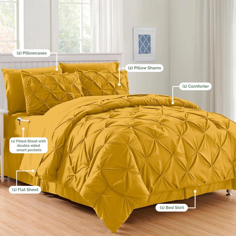 Elegant Mustard Twin/Twin XL Pintuck 8-Piece Comforter Set - Cozy Luxury Awaits ‹ › ‹ › ‹ › ‹ › ‹ › ‹ › ‹ › ‹ › ‹ › ‹ › Elegant Mustard Twin/Twin XL Pintuck 8-Piece Comforter Set Cozy Luxury Awaits Microfiber Dimensions: Comforter: 66" X 96" Bed Skirt: 39" x 80" Pillow Shams: 20" X 26" Flat Sheet: 66" X 96" Fitted Sheet: 39" x 80" (Deep-pocket up to 16 inches) Pillowcases: 20" X 30" Features: Elegant decoration with a luxurious pintuck design for an upscale bedroom aesthetic. quality Bed-in-a-Bag comforter set includes double-sided storage pockets on the fitted sheet for ultimate convenience. Safe and eco-friendly materials certified by OEKO-TEX 100 standard. Soft, cozy, stain, shrink, and wrinkle resistant fabric ensures long-lasting comfort and style. Benefits: All-season comfort with 100% down fiber filling, providing luxurious loft without the weight of traditional down. Machine washable for easy care; your comforter set can last for without visible wear. Double-needle sewn through construction prevents shifting, ensuring evenly distributed warmth. Convenient side pockets for personal items at arm's —perfect for glasses, remote controls, or bedtime reads. Allows you to enjoy a fabulous night's rest with style and practicality combined. Why Choose Our 8-Piece Set? This must-have comforter set redefines luxury and functionality. With its exquisite pintuck design, your bedroom will radiate elegance while providing the utmost comfort you'll look forward to every night. The built-in side pockets keep your essential items nearby, removing the hassle of searching for them in the dark. Plus, with quality craftsmanship and easy maintenance, this set promises to elevate your sleeping experience for to come. Indulge in the luxury you deserve. Order your Elegant Mustard Twin/Twin XL Pintuck Comforter Set today and experience cozy elegance like never before! Shipping Free & Fast Shipping - We offer free shipping to most of the USA with a normal delivery time of 3-7 days. However, due to the current situation, additional delivery time (up to 3 weeks) may be required for some items. Alternative Carriers - We may use alternative carriers (e.g. USPS, FedEx, UPS, etc.) to ensure your package arrives safely and on time. Due to the use of multiple carriers, we are unable to provide a tracking number automatically. Handling Time - Orders are processed and shipped within 1-2 business days of receiving cleared payment. Shipping Restrictions - Shipping to Alaska, Hawaii, Puerto Rico, Guam, and other US territories may incur shipping charges or delivery restrictions. Please contact us before ordering, or your order can be refunded/cancelled. State Restrictions - There may be restrictions based on your state of purchase. For example, certain items may not be shipped to California due to state regulations. Contact for Tracking Updates - If you require tracking updates or have any concerns about the delivery of your order, please feel free to contact us, and we will be happy to assist you. Return 30-Day Hassle-Free Returns - We want you to be completely satisfied with your purchase. If you are not, you can return the item within 30 days of receiving it for a full refund or exchange. Easy Return Process - To start a return, simply contact us and we will provide you with a prepaid return shipping label and detailed instructions. Restocking Fee - There are no restocking fees for returns. However, the buyer is responsible for return shipping costs if the return is not due to a seller's error. Refund Processing Time - Refunds will be processed within 5 business days of receiving the returned item in its condition. Payment We accept all major credit cards, PayPal, and Apple Pay for your convenience. Your payment information is secure and encrypted to ensure a safe and seamless transaction. Please complete your payment within 3 days of purchase to avoid any delays in shipping. Feedback Your feedback is extremely important to us. We strive to provide the best products and customer service possible. If you are satisfied with your purchase, please take a moment to leave us a positive review. If you have any concerns or issues with your order, please contact us before leaving negative feedback. We are committed to resolving any problems and ensuring your satisfaction. Contact Us If you have any questions or concerns, please feel free to out to our customer support team. You can contact us through the eBay messaging system. We are available Monday to Friday, 9:00 am to 5:00 pm EST, and we will do our best to respond to your inquiry within 24 hours. Buy it now and enjoy a pleasant shopping experience! Model: Pintuck Set Includes: Bed Skirt,Comforter,Fitted Sheet,Flat Sheet,Pillowcase,Pillow Sham Material: Microfiber Features: Breathable,Stain Resistant,Machine Wash,Soft,Cozy,Wrinkle Resistant,Shrink Resistant Theme: Luxury Care Instructions: Machine Wash,Machine wash cold,Delicate cycle,Tumble dry low,Do not bleach Department: Unisex Baby & Toddler,Kids,Teens,Adults Room: Bedroom Size: Twin Type: Comforter Set Color: Mustard Fill Material: Down Alternative Pattern: Pintuck Insulation: All Seasons Number of Items in Set: 8 Style: Pintuck Season: All Closure Type: No Closure Thread Count: 150 GSM (Grams per Square Meter): Not Specified