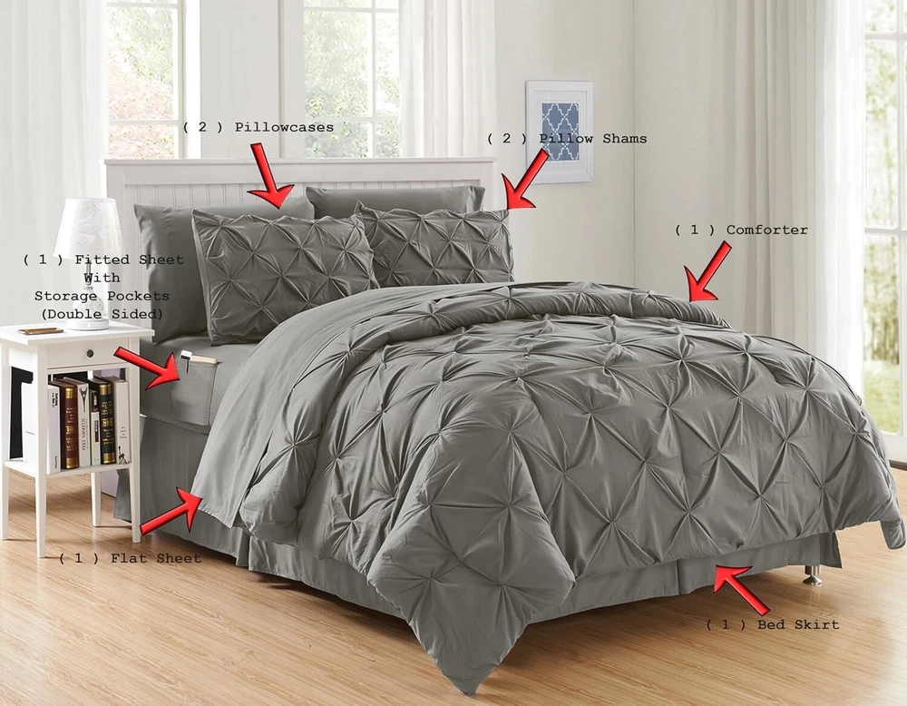 This bed set is a game-changer! The microfiber feels incredibly soft, and the pintuck detailing adds such an elegant touch. I love the storage pockets—so convenient for keeping essentials close. The set fits my queen bed perfectly, and everything looks and feels high-quality. Washing it was a breeze, and it came out looking brand new. Definitely worth the investment for a luxurious, hotel-like sleep experience!