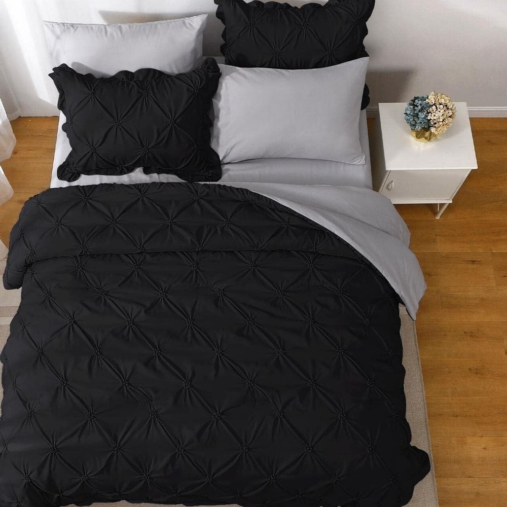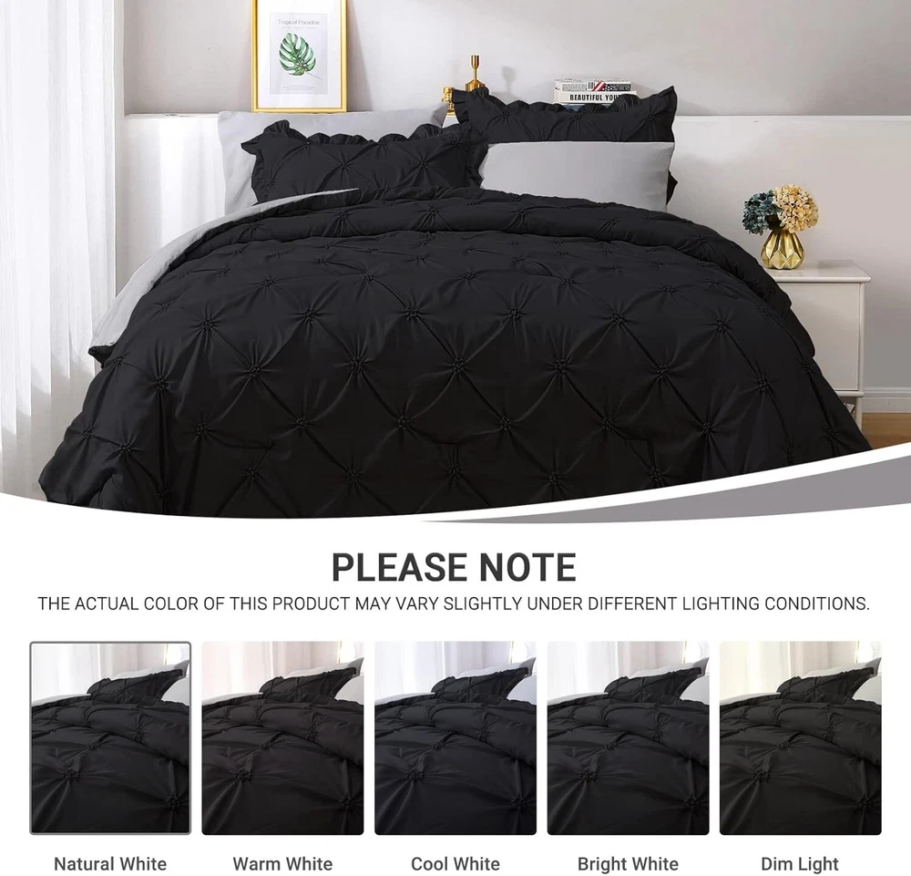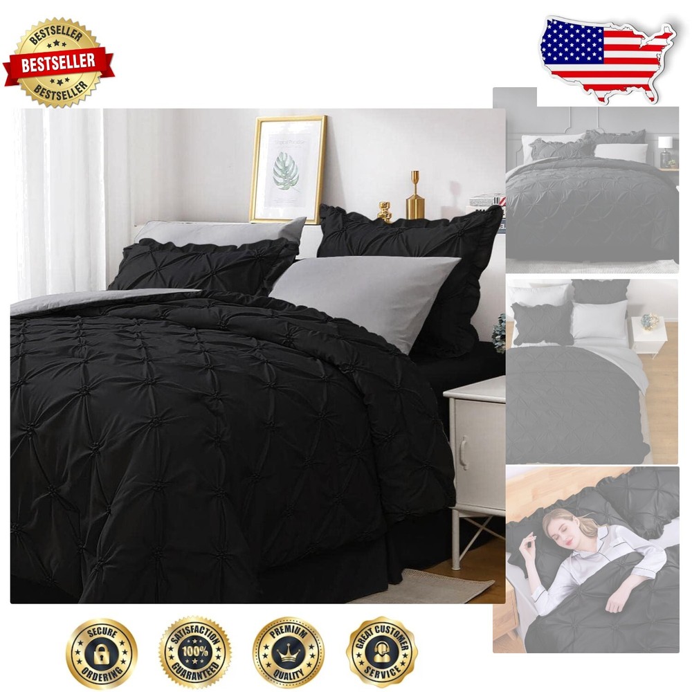 Elegant Pintuck King Comforter Set with Ruffled Shams - Ultimate Cozy Experience ‹ › ‹ › ‹ › ‹ › ‹ › ‹ › ‹ › ‹ › ‹ › ‹ › ‹ › Elegant Pintuck King Comforter Set with Ruffled Shams Ultimate Cozy Experience Premium Material: Crafted from 100% brushed microfiber for unparalleled comfort. Experience the luxurious touch of a 1000 thread count fabric that wraps you in softness. Perfect for all seasons, keeping you snug and cozy no matter the weather. Elegant Design: Designed in a chic pinch pleated style, effortlessly combining fashion and beauty. The pintuck and ruffled accents on the two pillow shams add a unique, fashionable touch to your bedroom décor. All-round Elastic: Features a cooling fitted sheet with 360° elastic that grips the mattress securely. Extra 14 inches depth accommodates deep mattresses or toppers, ensuring a perfect fit. Easy to Care: Effortlessly removable and machine-washable, making it easy to maintain freshness. Wash with cold water; avoid bleach, iron, or fabric softener to keep your set looking pristine. What You Can Get: 1 Comforter (102"x90") 1 Flat Sheet (108"x102") 1 Fitted Sheet (78"x80"+14") 2 Pillowcases (20"x40") 2 Pillow Shams (20"x36") Transform Your Bedroom: Indulge in the elegance and coziness of our Elegant Pintuck King Comforter Set. Fashioned for those who appreciate both beauty and comfort, this set is perfect for upgrading your bedroom aesthetic while ensuring a restful night's sleep. With its graceful design and sumptuous feel, create your ultimate cozy sanctuary today! Don't wait; embrace the charm and comfort of our premium bedding experience! Elevate your sleep space by adding this exquisite comforter set to your cart now! Shipping Free & Fast Shipping - We offer free shipping to most of the USA with a normal delivery time of 3-7 days. However, due to the current situation, additional delivery time (up to 3 weeks) may be required for some items. Alternative Carriers - We may use alternative carriers (e.g. USPS, FedEx, UPS, etc.) to ensure your package arrives safely and on time. Due to the use of multiple carriers, we are unable to provide a tracking number automatically. Handling Time - Orders are processed and shipped within 1-2 business days of receiving cleared payment. Shipping Restrictions - Shipping to Alaska, Hawaii, Puerto Rico, Guam, and other US territories may incur shipping charges or delivery restrictions. Please contact us before ordering, or your order can be refunded/cancelled. State Restrictions - There may be restrictions based on your state of purchase. For example, certain items may not be shipped to California due to state regulations. Contact for Tracking Updates - If you require tracking updates or have any concerns about the delivery of your order, please feel free to contact us, and we will be happy to assist you. Return 30-Day Hassle-Free Returns - We want you to be completely satisfied with your purchase. If you are not, you can return the item within 30 days of receiving it for a full refund or exchange. Easy Return Process - To start a return, simply contact us and we will provide you with a prepaid return shipping label and detailed instructions. Restocking Fee - There are no restocking fees for returns. However, the buyer is responsible for return shipping costs if the return is not due to a seller's error. Refund Processing Time - Refunds will be processed within 5 business days of receiving the returned item in its original condition. Payment We accept all major credit cards, PayPal, and Apple Pay for your convenience. Your payment information is secure and encrypted to ensure a safe and seamless transaction. Please complete your payment within 3 days of purchase to avoid any delays in shipping. Feedback Your feedback is extremely important to us. We strive to provide the best products and customer service possible. If you are satisfied with your purchase, please take a moment to leave us a positive review. If you have any concerns or issues with your order, please contact us before leaving negative feedback. We are committed to resolving any problems and ensuring your satisfaction. Contact Us If you have any questions or concerns, please feel free to reach out to our customer support team. You can contact us through the eBay messaging system. We are available Monday to Friday, 9:00 am to 5:00 pm EST, and we will do our best to respond to your inquiry within 24 hours. Buy it now and enjoy a pleasant shopping experience! UPC: Not Set Model: Pintuck Set Includes: Comforter,Fitted Sheet,Flat Sheet,Pillowcase,Pillow Sham Material: Microfiber Character: Not Set Features: Cooling,Hypoallergenic,Lightweight Theme: Elegant Care Instructions: Do Not Bleach,Do Not Iron,Machine Wash,Machine Wash Cold Department: Adults Room: Bedroom Labels & Certifications: Not Set Size: King Type: Comforter Set Brand: Unbranded Color: Black Fill Material: Polyester Pattern: Pintuck Item Width: Not Set Item Length: Not Set MPN: Not Set Character Family: Not Set Number of Items in Set: 7 Insulation: All Seasons Style: Elegant Season: All Country/Region of Manufacture: Not Set Closure Type: No Closure Thread Count: 1000 or More Drop Length: Not Set GSM (Grams per Square Meter): Not Specified Product Line: Not Set Personalize: Not Set