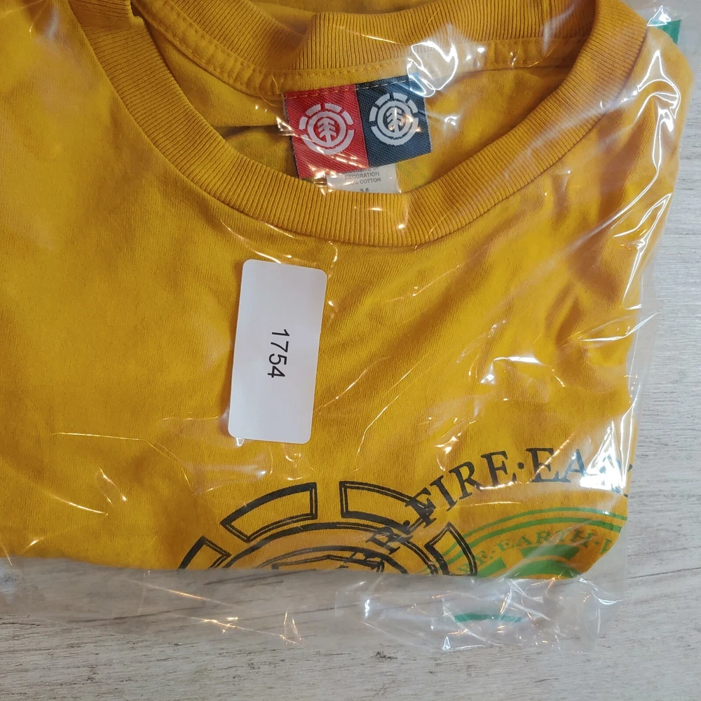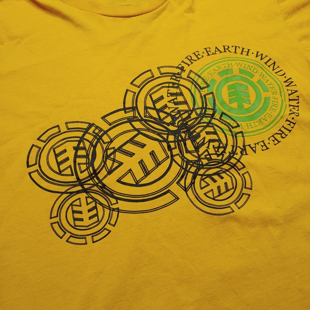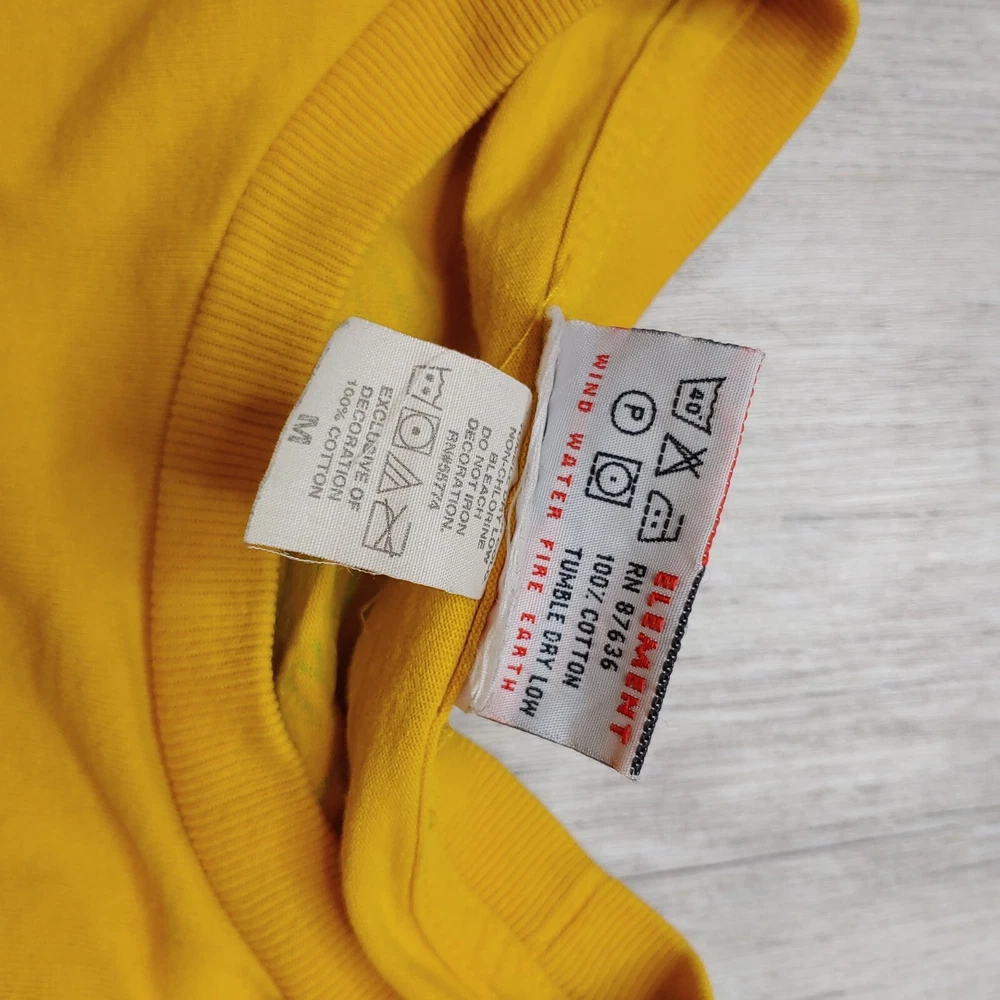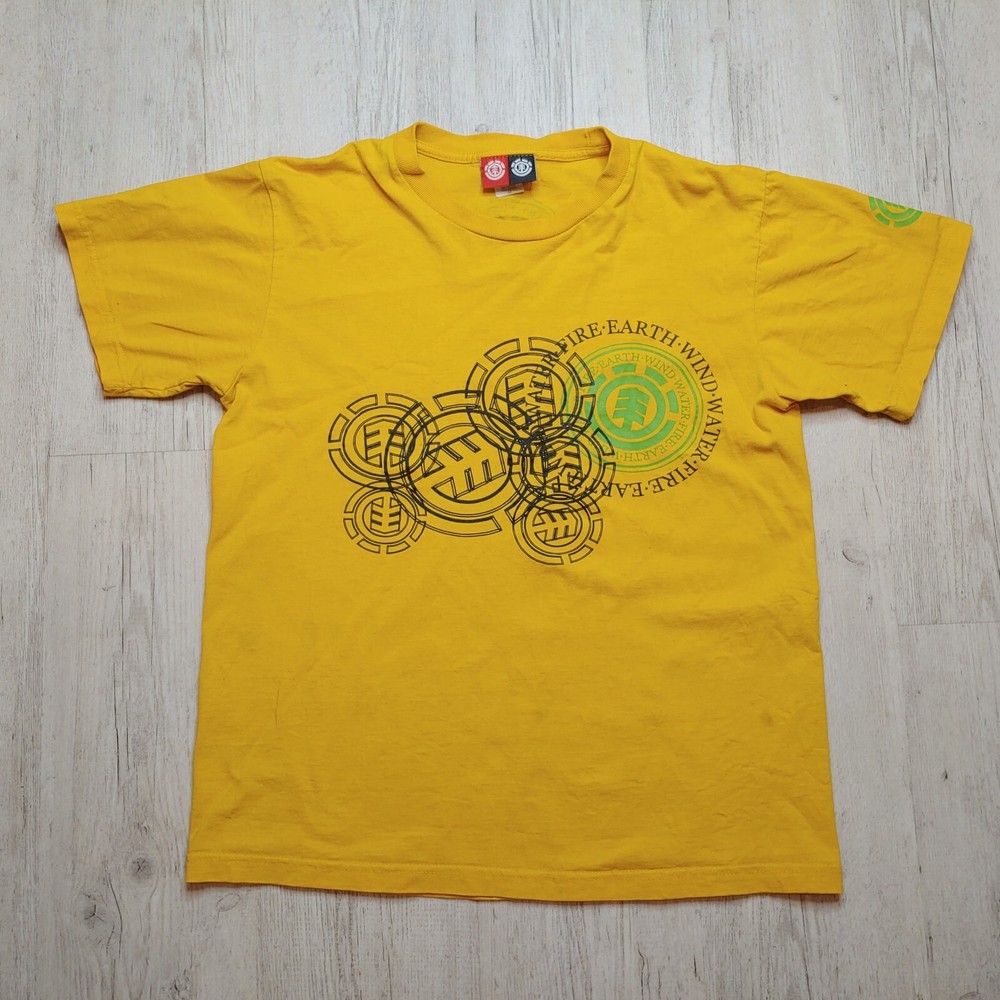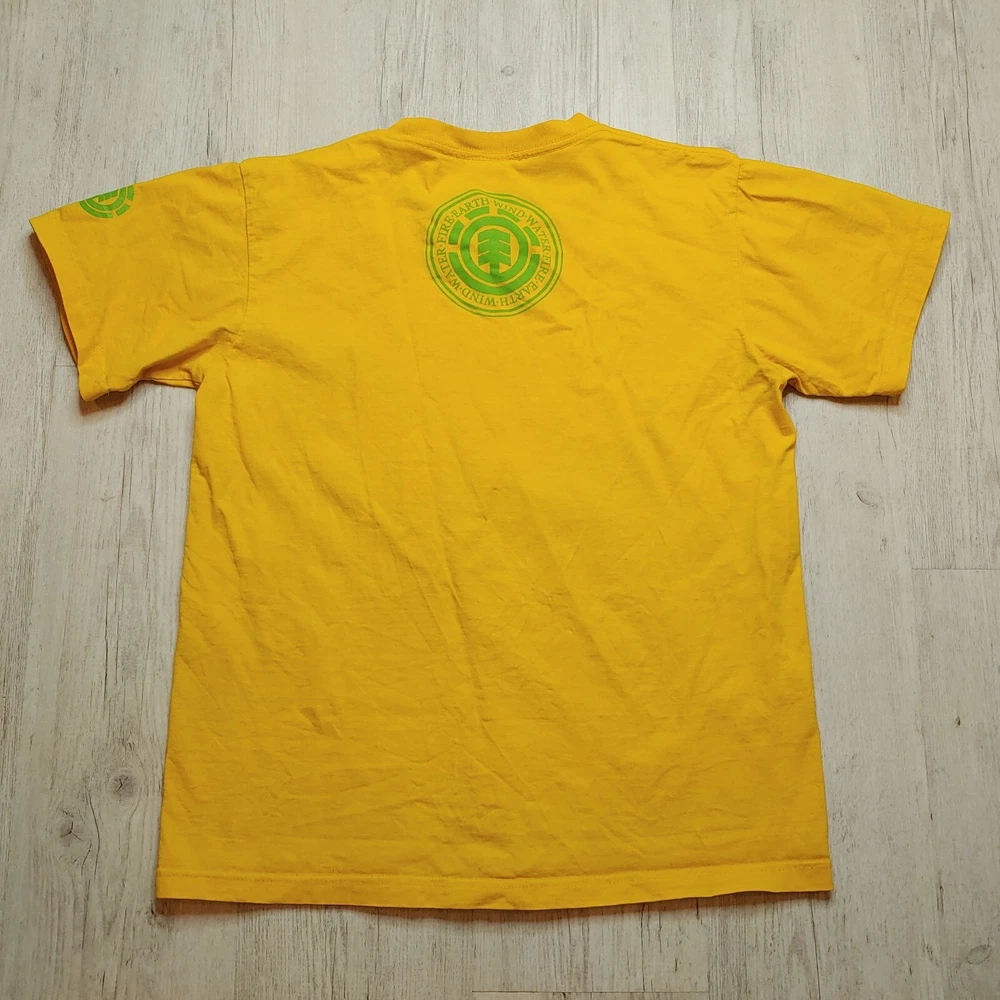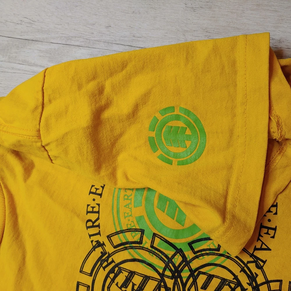Features Element skateboarding "Fire, Earth, Wind, Water" graphic print Vibrant yellow color with black and green Element logos Size M; 100% cotton ; see tag in photos for care instructions Measurements: Neck to hem: ~61 cm Pit to pit: ~50 cm Pre-owned with some minor wear and fading, soft fabric Ideal for skaters, streetwear fans, or casual everyday wear #Element #Skatewear #GraphicTee #StreetStyle #CasualWear Measurements: The approximately on the photos in cm on a flat lay in the following order: Length (top to bottom) Width (armpit to armpit) ⚠️ Please be aware that these items may exhibit signs of wear, distress, fading, or discoloration & staining. Some pieces may have holes, rips, pilling, or other flaws. Ask questions and view all photos.