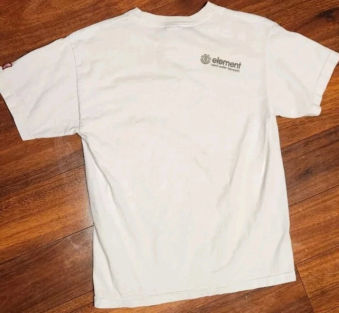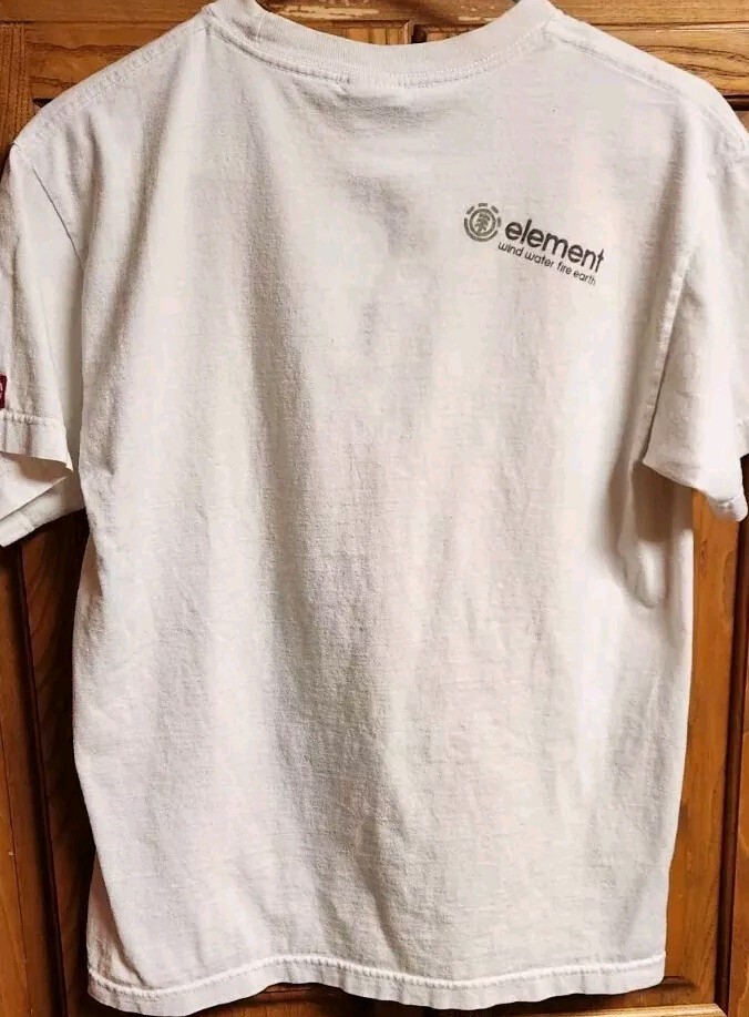 Element Skateboard T Shirt Mens M Wind Water Fire Earth Short Sleeve Made Vintage. Has a mark seen in photo . Fits more like a modern day Men's small. MEASUREMENTS : 25" TOP OF SHOULDER TO VERY BOTTOM OF SHIRT 18.5" ARM PIT TO ARM PIT 5" SLEEVE LENGTH PLEASE FOLLOW OUR STORE. WE POST NEW ITEMS DAILY AND ALWAYS HAVE GREAT DEALS!!! WE TRY TO MAIL WITHIN 1 BUSINESS DAY OF PAYMENT!!! HAVE A WONDERFUL DAY AND GOD BLESS!!