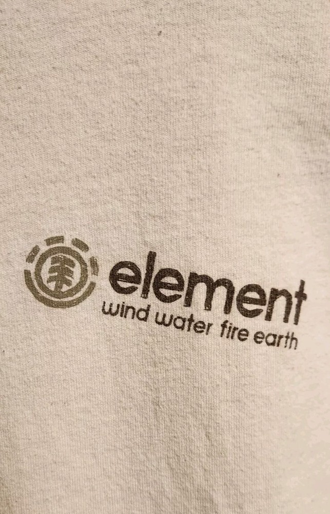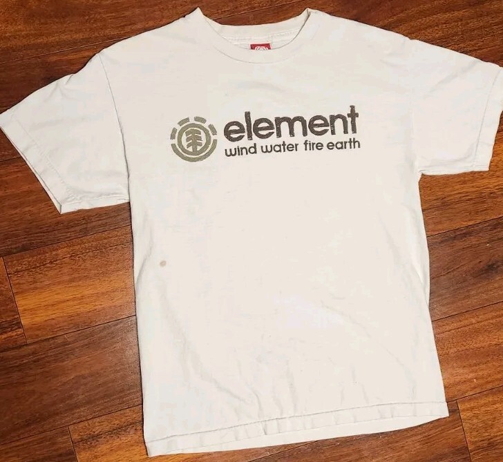 Love this vintage Element tee! The Wind Water Fire Earth design is super cool, and the slightly worn look gives it character. Fits snug like a modern small—perfect if you prefer a fitted style. Super soft fabric and great quality print. Super fast shipping too! Highly recommend for any skate or streetwear fan.