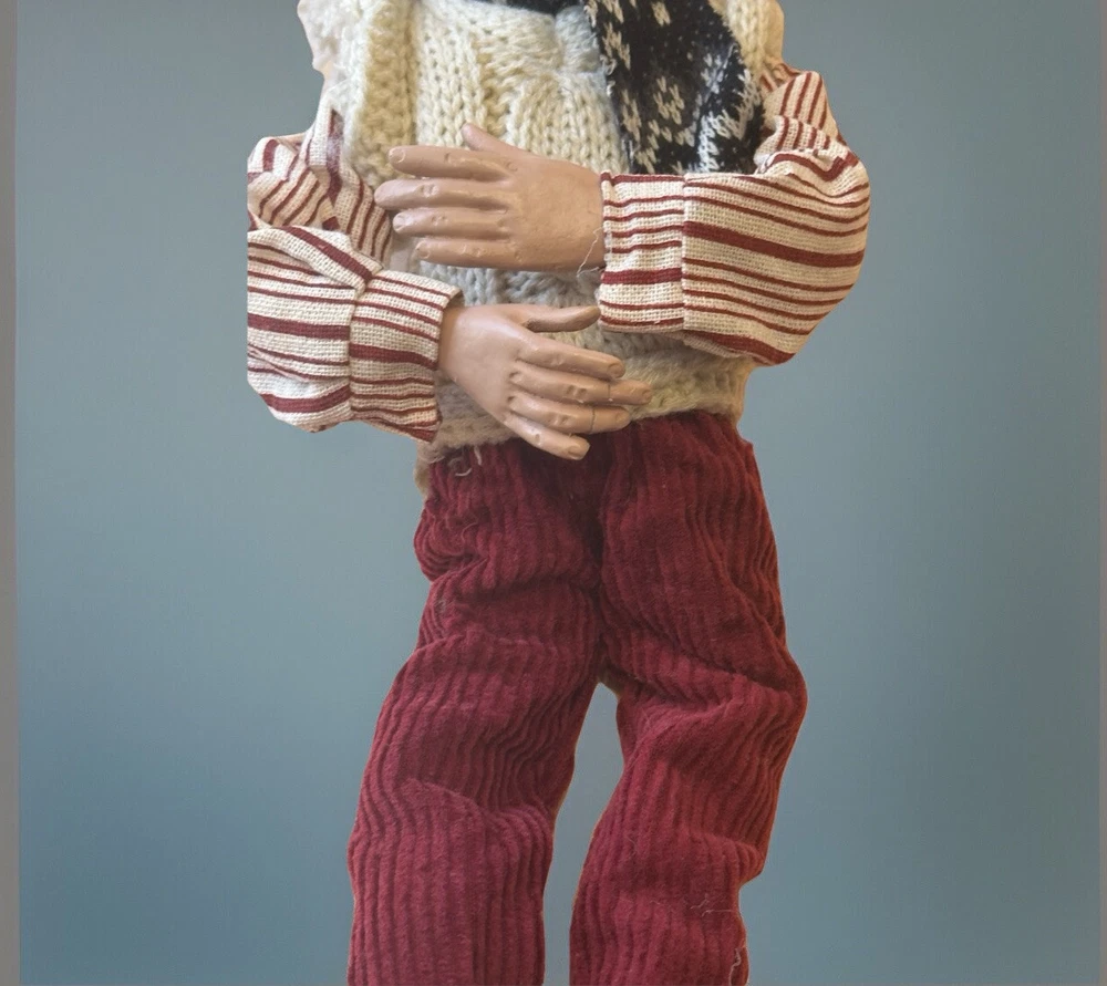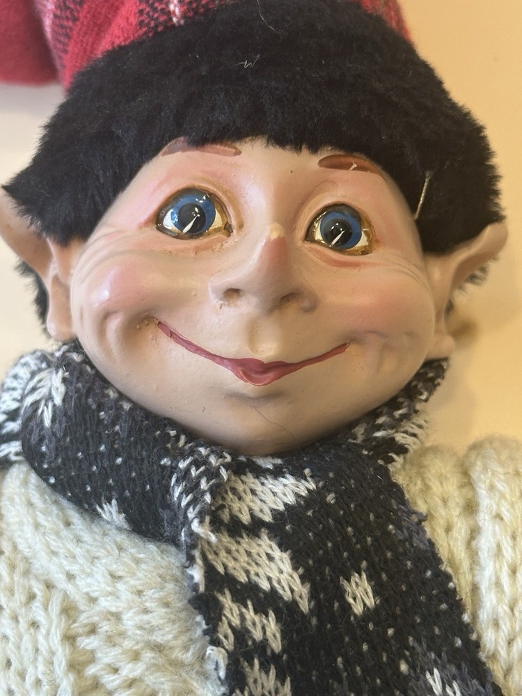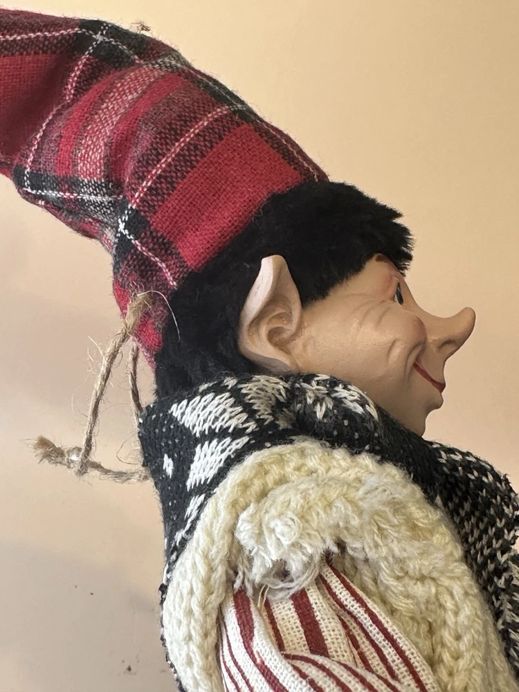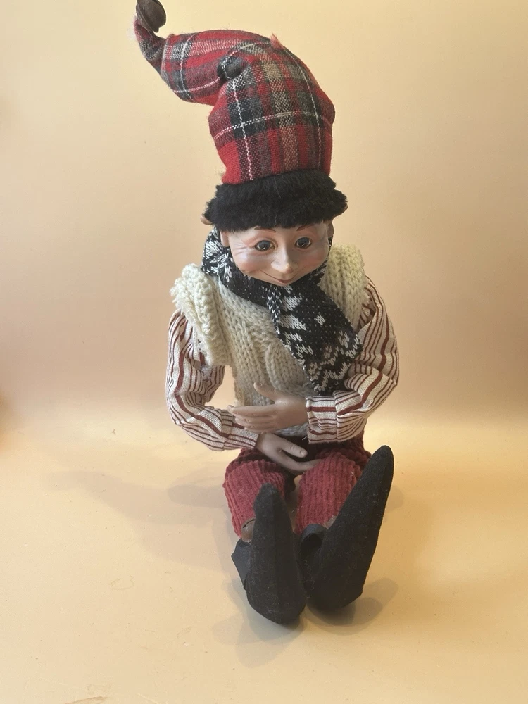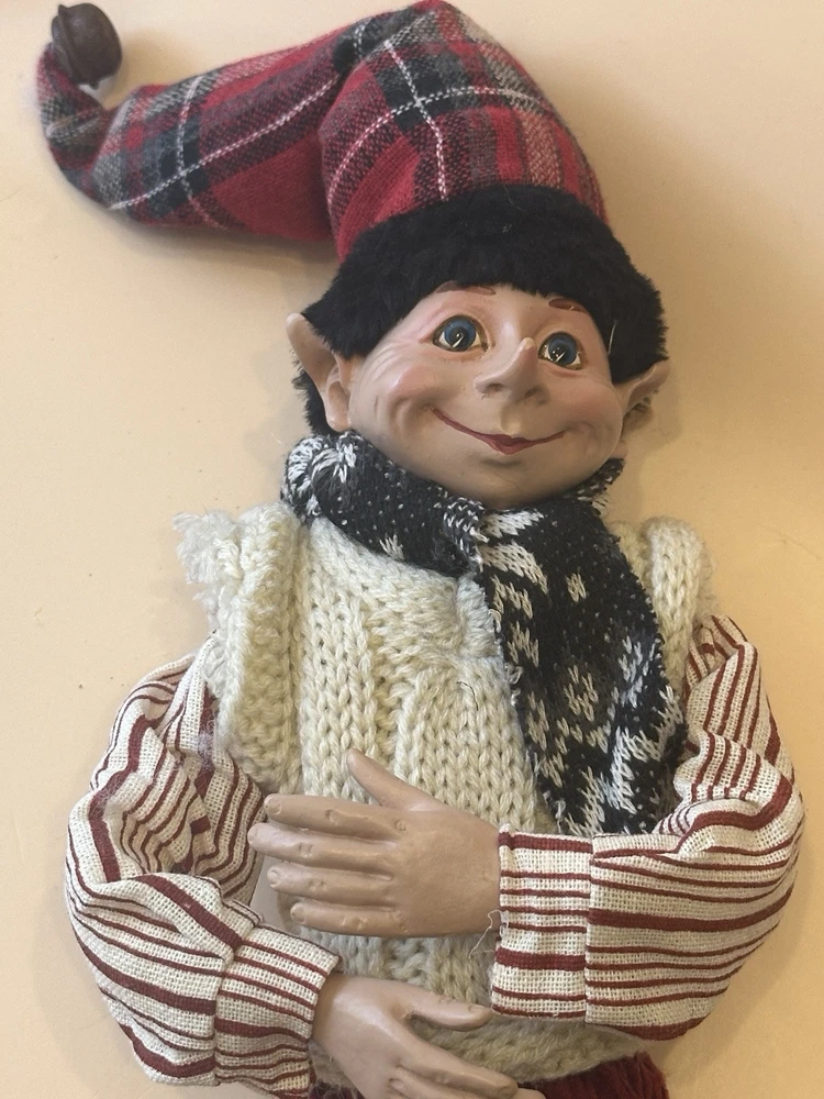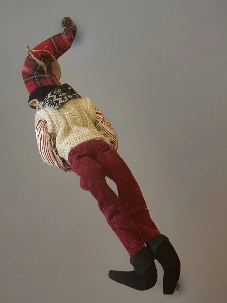 Add a festive touch to your Christmas decor with this 20" posable Elf figurine from RAZ Imports. This multicolor elf is dressed in a cozy knit sweater, with corduroy pants and is perfect for hanging on your Christmas tree or as a decorative addition to your holiday collection. The elf is artist designed and features a range of decorative features including hanging capabilities and a poseable body for added fun. Celebrate the season with this charming elf ornament that is sure to bring a smile to your face. Please look at the enlarged picture 5! It looks like there is a repair on two fingers! I never noticed until taking pictures! Hard to notice. I have enjoyed him the last 5 years since I bought him at an estate sale and never noticed! Hope you can enjoy him for years to come!