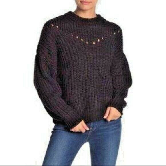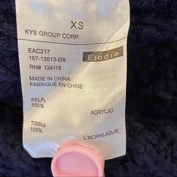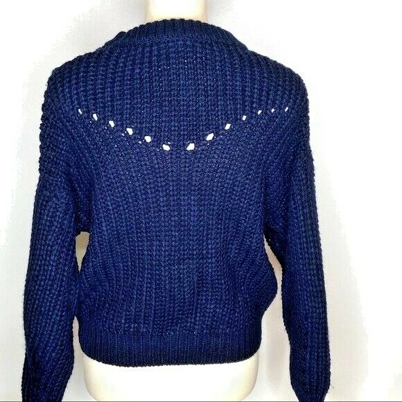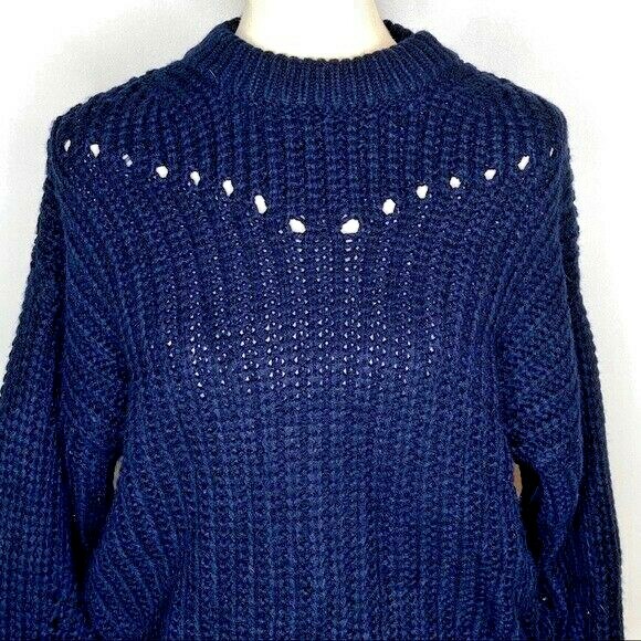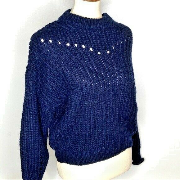 Elodie Navy Open Stitch Pullover Sweater XS NWOT - Oversize boxy fit Chunky sweater with open knit styling. - Crew neck. - Trendy drop shoulders with gathered long sleeves. - Acrylic NWOT Brand New without Tags Womens sz XS Armpit to armpit: 23" Length: 21.5" Tags: Chunky sweater, Warm, cozy, Apres ski, Casual sweater, Fall, Winter Spring, Navy blue, Relaxed fit X-39-0-121