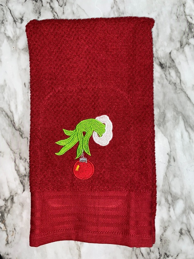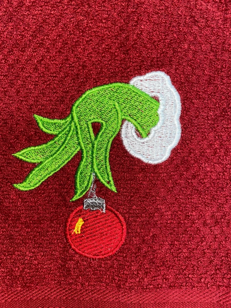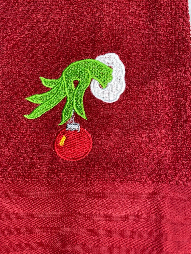 Embroidered Red Cotton Mainstays Kitchen Hand Towel Christmas Ornament Holiday Theme BS2941 Design is approx. 4" x 4" Hand Towel 15" x 25" Note: Some clear water soluble stabilizer may remain and will wash out. Thank you