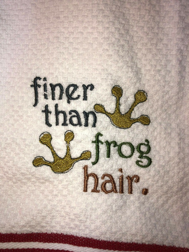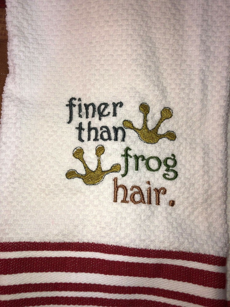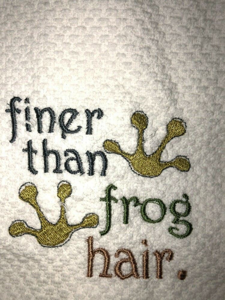 Embroidered White with Red Stripes 100% Cotton Mainstays Kitchen Hand Towel Finer than Frog Hair BS1755 Design is approx. 4" x 3.5 " Hand towel 15" x 25" Note: Some clear water soluble stabilizer may remain and will wash out. Thank you for your business!
