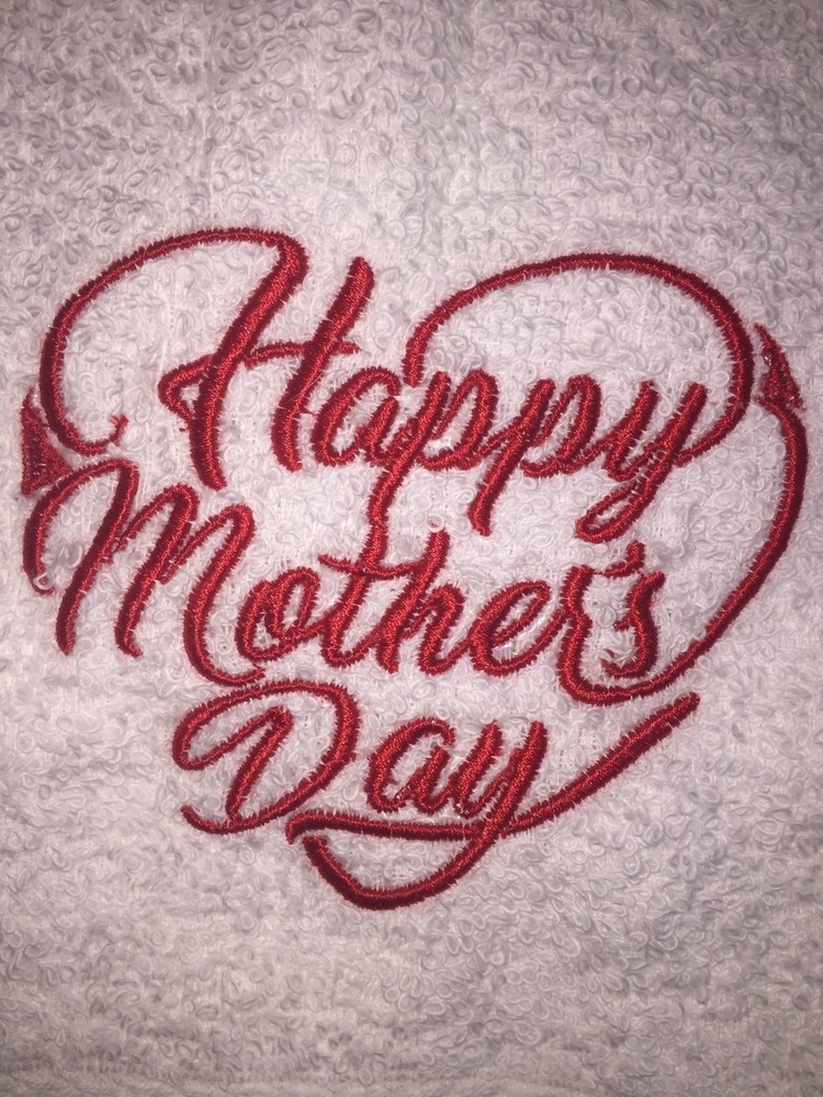 Embroidered 100% Cotton White Bathroom Hand Towel Happy Mother's Day in Heart *****Red Thread Used- HS0873 Design is approx. 4" x 3" Hand Towel 16" x 26" Note: Some clear water soluble stabilizer may ...