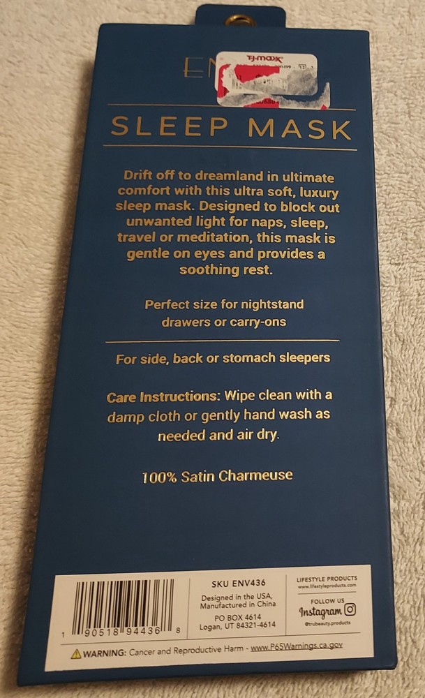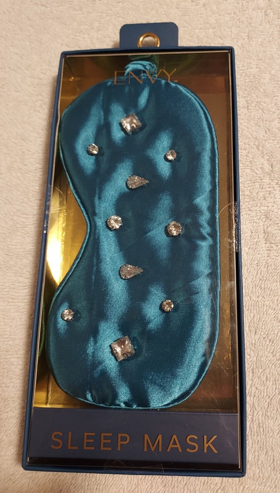 *New In Box* Envy Bling Teal Sleep Mask 100% Satin Charmeuse Rhinestones Dreamy Cozy Comfort.