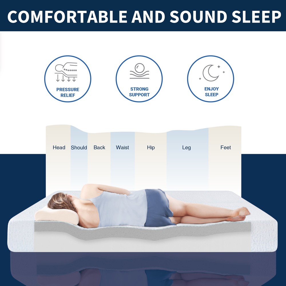 Experience next-level comfort and support with the Essence Sleep Memory Foam Mattress , expertly engineered with premium materials and innovative design. Featuring a multi-layer foam construction, this mattress offers a medium feel with enhanced motion isolation, edge-to-edge support, and superior airflow for a cool, undisturbed night’s sleep. The top layer of AeroFusion memory foam paired with a flex support base provides the perfect balance of softness and support, making it ideal for side, back, and stomach sleepers. Certified by CertiPUR-US® and OEKO-TEX® Standard 100, the mattress meets high standards for safety and environmental responsibility. Available in 6” to 14” profiles, there's a perfect fit for kids, teens, adults, guest rooms, dorms, and rental properties. The breathable double jacquard cover is both soft and easy to clean, while the mattress arrives conveniently compressed in a box and expands fully within 48–72 hours. Compatible with all bed frames, including adjustable bases, the Essence Sleep Memory Foam Mattress is a smart and stylish upgrade for any bedroom.