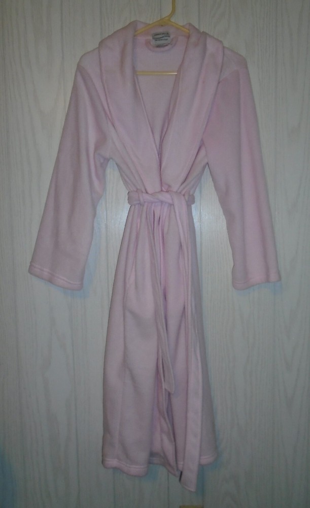 Indulge in luxurious comfort with this Essence of Beauty Cozy Fleece Pink Robe Belted One Size Fits Most. The plush robe features a solid pattern with long sleeves and a belted closure for a perfect fit. The soft and cozy fleece fabric is accented with pockets for added convenience. It is machine washable and easy to maintain. This robe is perfect for comfortable lounging and is available in a beautiful pink color. The brand is Essence Of Beauty and it is made of polyester material. This robe is a must-have addition to your sleepwear collection.