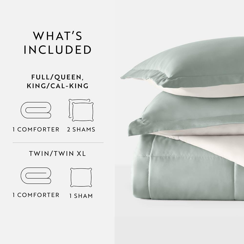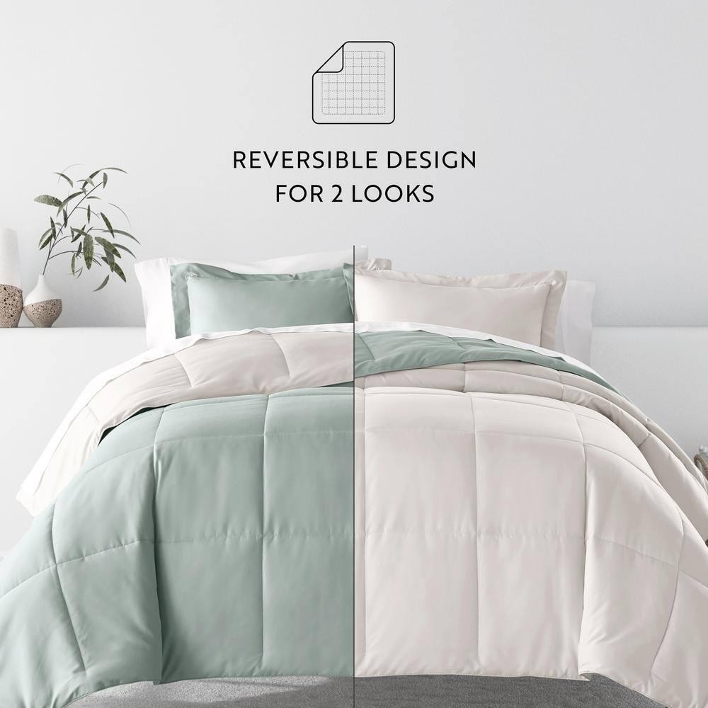 Contact Us Add to Favorite Contact Us Add to Favorite Fast Shipping Hassle Free Return eBay Money Back Guarantee Authenticity Guarantee Features Made of double-brushed microfiber for softness and durability 180 gsm down alternative filling provides warmth End to end baffle box stitching prevents shifting Item Description Give your bedding a brand new look and feel with this all season reversible down alternative comforter set. Presenting a quality alternative to down, it's incredible loft and down like feel makes it the perfect comforter to keep you cozy all year round. The end to end baffle box construction helps to eliminate the need for regular fluffing by preventing the fibers from shifting. Featuring a reversible design of aesthetically matched colors, this set is ideal for making quick style changes to your sleep space. Bedding Material: Microfiber Care Instructions: Machine Wash Color: Eucalyptus / Natural Color Family: Green Decor Type: Bedroom Linen Decorative Accents: No Decorative Accents Features: Reversible,Soft Fill Material: Polyester Lifestage: Adult Linen Type: Comforter Set Material: Polyester (100%) Material Family: Polyester Number of Pieces: 3 Origin: Imported Pattern Type: Solid Color Returnable: 90-Day Set : Comforter,Sham Size: King/California King Style: Cottage,Farmhouse,Minimalist,Modern Thread Count: 0 Certifications and Listings: No Certifications or Listings Comforter Length (in.): 96 in Comforter Width (in.): 108 in Sham Length (in.): 20 in Sham Width (in.): 36 in About us Customer service is our top priority! Please be sure to read the description thoroughly to make sure that this is the item you want before making a purchasing decision. If you have any questions about this item, please contact us via eBay messages before placing your order. We make every effort possible to accurately describe and depict the items. Please be aware that slight variations in color may be due to differences in lighting and computer monitor resolutions. All items are in stock at the time of listing; however, in the unlikely and unforeseen event that we are unable to fulfill your order through any of our networked warehouses, we will notify you as quickly as possible and offer you a 100% refund on your purchase. Thank you for shopping with us. We appreciate your business! Payment PayPal is our preferred method of payment. If you do not have a PayPal account, all major credit cards are gladly accepted through PayPal as the payment processor. PayPal offers great buyer and seller protection. Your order will be processed pending receipt of cleared payment through PayPal. Sales tax may be charged depending on your location. Shipping We provide fast, free shipping. Most items are shipped within 3-5 business days of receiving cleared payment. We ship to the lower 48 contiguous United States only. We do not ship to P.O. Boxes or APOs. For select items, we ship internationally through eBay?s Global Shipping Program. We do ship most of our smaller items internationally using eBays Global Shipping Program. If ordering electrical items outside of the U.S., please note that they will come equipped with a standard U.S. voltage plugs. You will need a suitable adapter to use the item in your country. Certain restrictions apply. Standard or Economy Shipping is ALWAYS FREE! You will be notified via eBay messages as soon as your items ship. Special Notice for Freight Items: If an item ships via Freight (Truck) Delivery, a valid phone number will be required so that we can contact you to schedule delivery. The item may be delivered with curbside delivery. An adult signature will be required. Please be sure to have available help on hand to assist you with moving the item to the desired location in or outside of your home. Freight items must be inspected upon delivery. In the unlikely event that damaged is observed, you MUST refuse delivery and note the damage on the shipping receipt and send it back via the Freight carrier. Returns will not be accepted on Freight items after they have been delivered, inspected, and the driver has left the premises. Returns We offer a 30 day return/exchange policy for most of our products. You can request a refund if you are dissatisfied for any reason with your product. (Restocking Fee May Apply). Only factory defects are accepted as a reason for a return. In the case of factory defects, if available, we will replace the product for you. When returning an item, it must be in all of the original packaging and include all of the original accessories or items that came with it. The item and package should be in original and perfect condition. You will be required to cover shipping on the return of non-defective items. All returns MUST be done within 30 days of date of purchase. Please note that we cannot give refunds or replacements after the 30 day limit has expired. When sending in a return, please note that it can take up to 7 business days for the return to be processed. We do our best to process as quickly as possible. We are extremely fair, and in the rare event of something out of the ordinary happening with our products or shipping, we will gladly work with you to find a fair resolution. Disclaimer Were sorry, but we do not honor product exchange requests. If you need to exchange an item received, you will need to go through the normal returns process identified in our returns section and then order the correct item, if it is still available. Orders are processed immediately and dispatched to fulfillment as soon as they are received. For this reason, we are typically unable to honor cancellation requests. If you need to cancel the transaction, please contact us as soon as possible and we will attempt to cancel the order. If the order has gone too far through the fulfillment process, we will be unable to cancel. In that event, you would need to wait until you receive the item and go through the normal returns process as mentioned in the returns section of our 