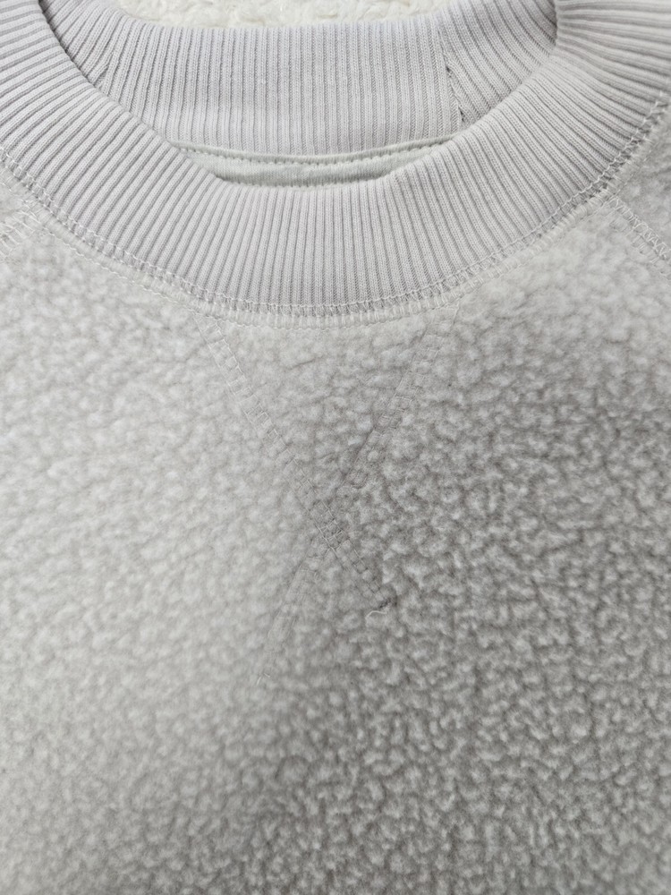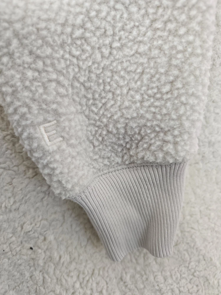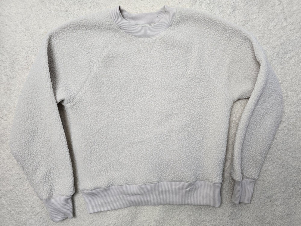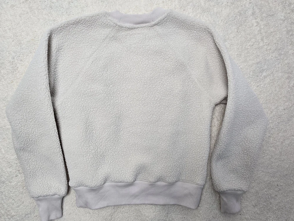 Everlane's The Renew Fleece Raglan Sweatshirt in Sandstone is perfect for any occasion, whether it's for travel, casual wear, or work. This sweater features a crew neck and long raglan sleeves, with a tight-knit fleece fabric that is both cozy and warm. It comes in a size small and is machine washable for easy care. This classic sweater has a solid pattern and is accented with fleece detailing, making it perfect for outdoor activities or loungewear.