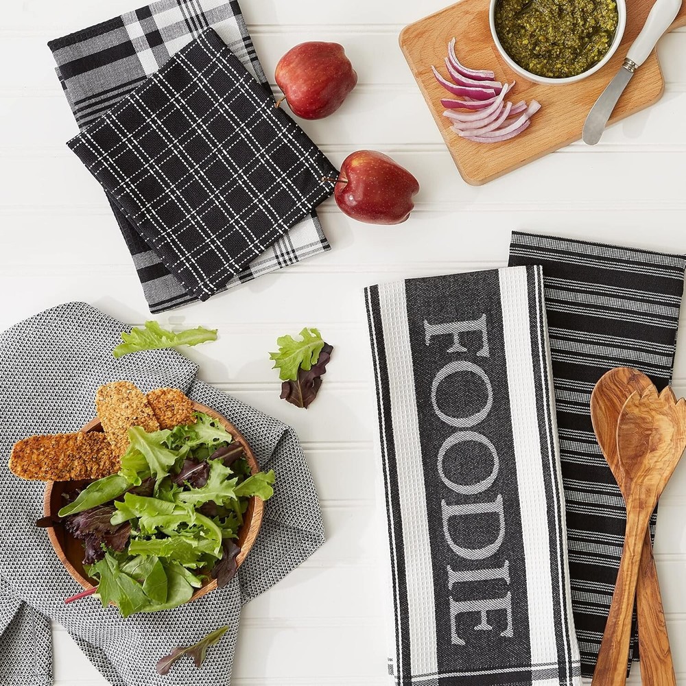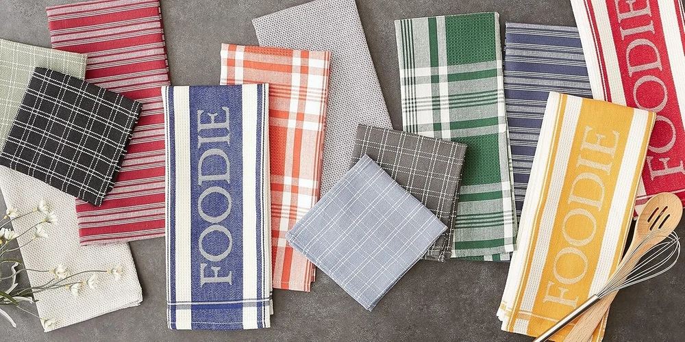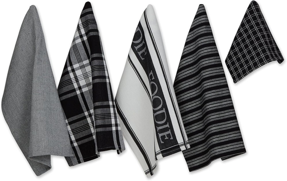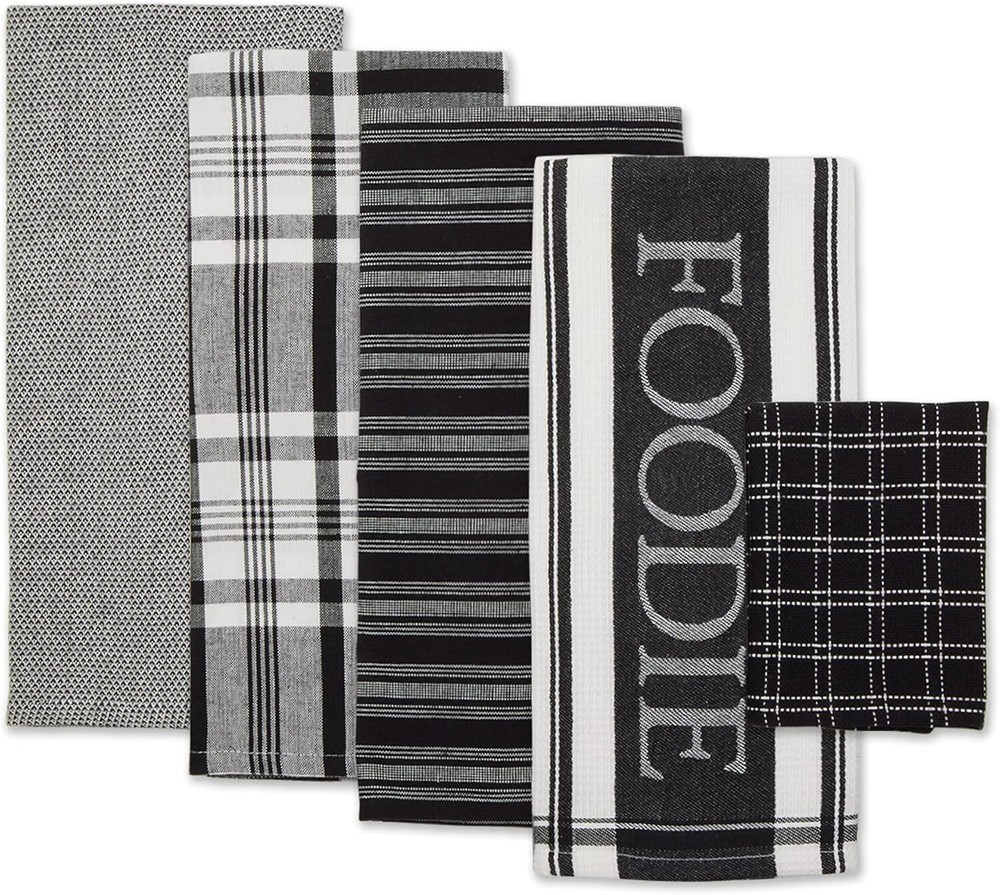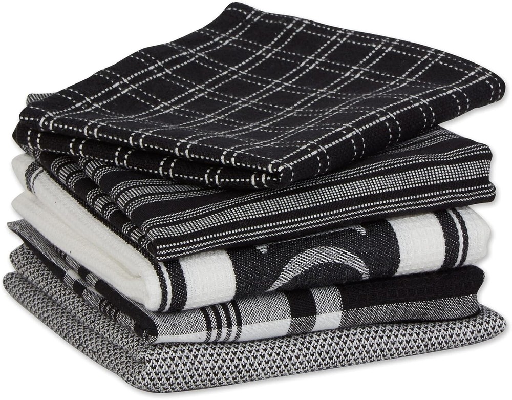 DII offers full collections of trend based designs, bringing you fresh, innovative lines of quality home and garden products for every season. Let DII products become a valuable part of your life. Cotton A DISH TOWEL SET TO TACKLE KITCHEN MESS - Each set includes 4 dishtowels that measure 18 x 28" and 1 dishcloth that measures 13 x 13"; easily handles all of your drying and cleaning kitchen tasks EASY CARE LONG-LASTING MATERIAL - 100% cotton fabric, machine washable; wash with cold water on gentle & tumble dry low. Do not bleach or run through a hot dryer ULTRA ABSORBENT AND LOW LINT - These towels are lightweight, super absorbent and dry quickly; machine washable and durable for daily use. Get the job done quickly the RIGHT way with these dish towels! GREAT WELCOME GIFT FOR YOUR NEW NEIGHBORS - These easy care dishtowels come in multiple colors, perfect to coordinate with any kitchen; they also make great Mother's Day, holiday, housewarming and hostess gifts