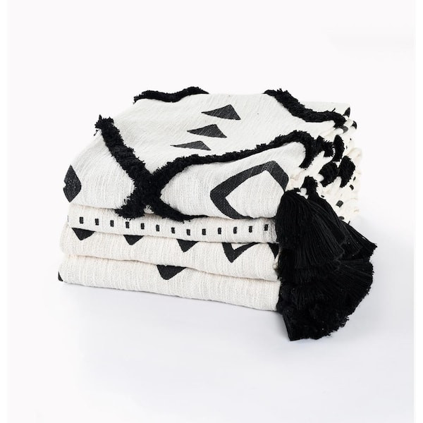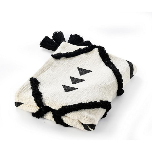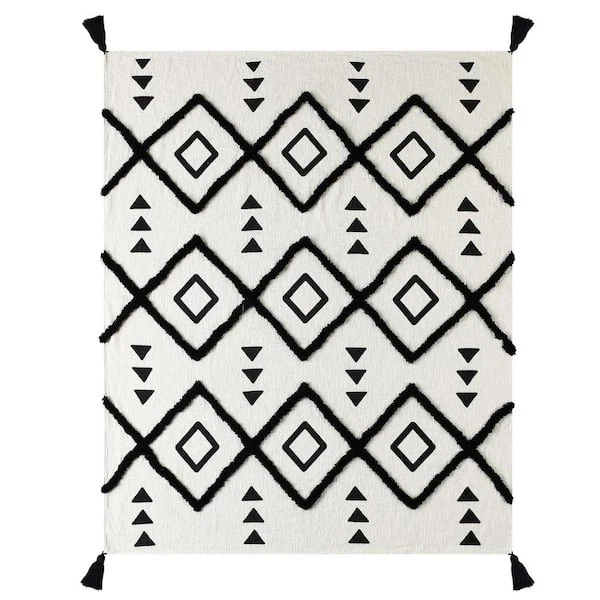 Designed with a balance of leisure and luxury in mind, this everyday accent merges well with multiple decor styles from modern to casual to bohemian to Scandinavian; this addition is a neutral necessity for your home or office. Stand alone or layer with other accents, this throw brings comfort and style to your space in black and white tones with rich textured tufting and finishing corner tassels. Bring dynamic design into your home by draping over a chair, sofa, couch, or bed. Crafted with care in India, each throw blanket is unique with its very own individuality.
