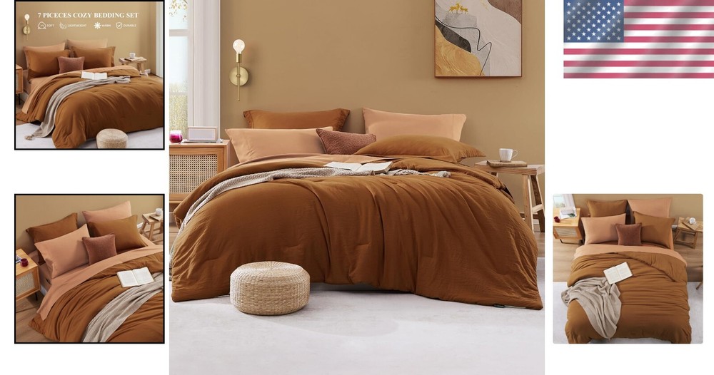Exquisite Full Size Comforter Set - 7-Piece Terracotta Bedding for Luxury Appeal ‹ › ‹ › ‹ › ‹ › ‹ › ‹ › ‹ › ‹ › ‹ › Exquisite Full Size Comforter Set - 7-Piece Terracotta Bedding for Luxury Appeal Elevate Your Sleeping Experience Indulge in the luxurious embrace of our Exquisite Full Size Comforter Set , meticulously designed to transform your bedroom into a sanctuary of comfort and style. This stunning 7-piece set features a harmonious blend of terracotta hues, exuding an aura of sophistication and warmth. Product Features: 7-piece set includes: 1 Full Comforter (80" x 90") 2 Pillow Shams (20" x 26" + 2") 1 Full Fitted Sheet (54" W x 75" L + 14") 1 Full Flat Sheet (81" W x 96" L) 2 Pillowcases (20" W x 30") Crafted from 100% microfiber for a soft and durable finish. Stuffed with cloud-like filling for unmatched warmth and fluffiness. Features a unique contrasting color design for a modern, minimal aesthetic. Comfort Meets Functionality Experience the perfect blend of functionality and elegance with our Exquisite Comforter Set . The rich, terracotta tones and chic color variations are designed to pair effortlessly with any bedroom decor, creating an inviting atmosphere. Whether it's for your master bedroom or a guest room, this bedding set will add an exquisite touch of warmth and style. Effortless Care: Machine washable in cold water; gentle cycle. Tumble dry low for easy maintenance. Tight stitching prevents shifting and bunching of filling. Perfect Gift Choice: Delight your loved ones with this luxurious comforter set on their special occasions - from birthdays to holidays, it’s the ultimate gift for anyone who cherishes comfort and beauty in their living space. Please Note: Color variations are intentionally designed to enhance the aesthetic appeal of the set. For best results, we recommend running the comforter through a low-heat cycle in the dryer before the first use after unpacking, allowing it to naturally fluff back to its exquisite form. Transform Your Bedroom Today! Step into a realm of comfort and luxury with our Exquisite Full Size Comforter Set. Order now to elevate your sleeping experience and indulge in the warmth and elegance you deserve! Shipping Free & Fast Shipping - We offer free shipping to most of the USA with a normal delivery time of 3-7 days. However, due to the current situation, additional delivery time (up to 3 weeks) may be required for some items. Alternative Carriers - We may use alternative carriers (e.g. USPS, FedEx, UPS, etc.) to ensure your package arrives safely and on time. Due to the use of multiple carriers, we are unable to provide a tracking number automatically. Handling Time - Orders are processed and shipped within 1-2 business days of receiving cleared payment. Shipping Restrictions - Shipping to Alaska, Hawaii, Puerto Rico, Guam, and other US territories may incur shipping charges or delivery restrictions. Please contact us before ordering, or your order can be refunded/cancelled. State Restrictions - There may be restrictions based on your state of purchase. For example, certain items may not be shipped to California due to state regulations. Contact for Tracking Updates - If you require tracking updates or have any concerns about the delivery of your order, please feel free to contact us, and we will be happy to assist you. Return 30-Day Hassle-Free Returns - We want you to be completely satisfied with your purchase. If you are not, you can return the item within 30 days of receiving it for a full refund or exchange. Easy Return Process - To start a return, simply contact us and we will provide you with a prepaid return shipping label and detailed instructions. Restocking Fee - There are no restocking fees for returns. However, the buyer is responsible for return shipping costs if the return is not due to a seller's error. Refund Processing Time - Refunds will be processed within 5 business days of receiving the returned item in its condition. Payment We accept all major credit cards, PayPal, and Apple Pay for your convenience. Your payment information is secure and encrypted to ensure a safe and seamless transaction. Please complete your payment within 3 days of purchase to avoid any delays in shipping. Feedback Your feedback is extremely important to us. We strive to provide the best products and customer service possible. If you are satisfied with your purchase, please take a moment to leave us a positive review. If you have any concerns or issues with your order, please contact us before leaving negative feedback. We are committed to resolving any problems and ensuring your satisfaction. Contact Us If you have any questions or concerns, please feel free to out to our customer support team. You can contact us through the eBay messaging system. We are available Monday to Friday, 9:00 am to 5:00 pm EST, and we will do our best to respond to your inquiry within 24 hours. Buy it now and enjoy a pleasant shopping experience! Model: Comforter Set Set Includes: Comforter,Fitted Sheet,Flat Sheet,Pillowcase,Pillow Sham Material: Microfiber,Polyester,100% Mikrofiber Features: Soft,Durable,Comfortable,Easy Care Theme: Luxury Care Instructions: Do Not Bleach,Do Not Iron,Machine Wash,Machine Wash Cold,Tumble Dry on Low Heat Department: Unisex Baby & Toddler,Kids,Teens,Adults Room: Bedroom Size: Full Type: Comforter Set Color: Terracotta Fill Material: Polyester Pattern: Solid Insulation: All Seasons Number of Items in Set: 7 Style: Traditional Season: All Seasons Closure Type: No Closure Thread Count: 200 or Less GSM (Grams per Square Meter): 150 to 300