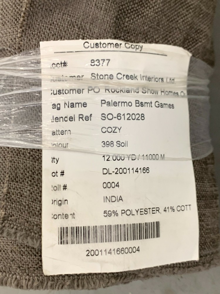 FABRIC ROLL COZY 398 SOIL / EARTH COLOR LIGHT BROWN 12 YARDS NEW AS SHOWN