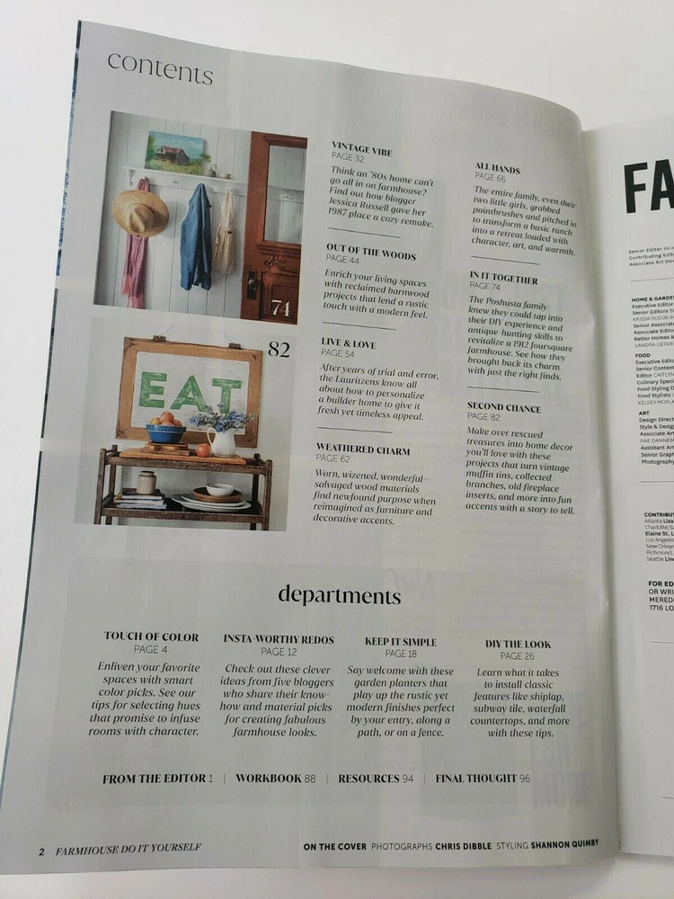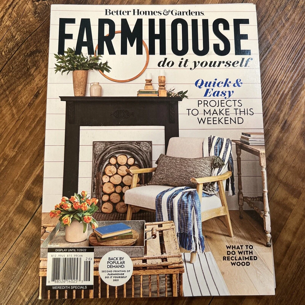~ Better Homes & Gardens ~ FARMHOUSE DO IT YOURSELF Special Issue Magazine "Quick & Easy Projects" New! 2022 Special Issue 96 Illustrated Poster Quality Pages Front Cover: Farmhouse Favorites No Address Label On Cover Condition: Brand New Pristine magazine. No address label. Brand new unused & unread magazine from a smoke-free, pet-free environment. UPC 888526140253 Featuring: Better Homes & Gardens FARMHOUSE DO IT YOURSELF ~ Quick & Easy Projects to Make This Weekend ~ What to do With Reclaimed Wood PLUS Touch of Color: Painted Floors ~ Insta Worthy Redos ~ Keep It Simple ~ DIY the Look ~ Vintage Vibe ~ Out of the Woods ~ Live & Love: Wall Treatments ~ Weathered Charm ~ All Hands ~ In It Together ~ Second Chance: Weekend Projects ~ Final Thought ... and More! Payment required immediately with Buy It Now. Prompt handling and shipping via USPS. Please email with any questions. Thank you!