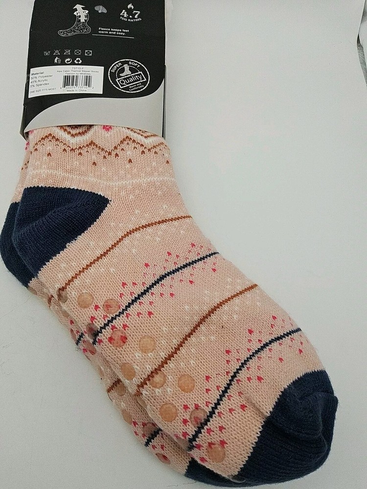 Elevate your winter and fall wardrobe with these Fashion by Mirabeau Alps Cabin Thermal Slipper Socks. The multicolor Fair Isle pattern adds a touch of charm to the warm and cozy theme, while the non-slip feature ensures safety and comfort. Perfect for everyday and casual occasions, these mid-calf socks are made of an acrylic blend material and feature a full toe style. Hand wash only lay flat dry for optimal garment care and performance. These socks are designed for women and come in one pair per pack. The Als Cabin character family adds a unique touch to the socks, making them a perfect addition to any winter or fall outfit.