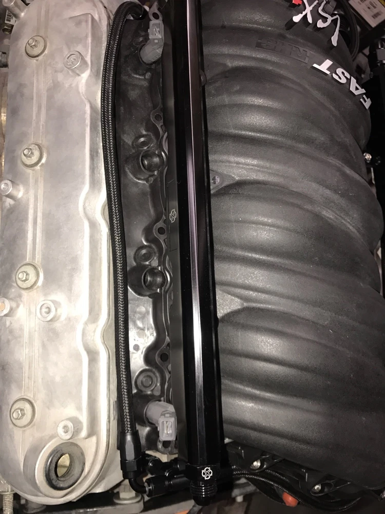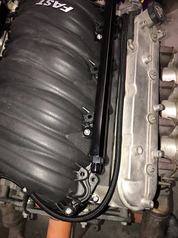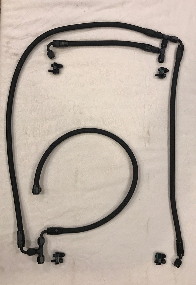 These are the highest quality fittings available. Many people on eBay have copied my kits and even screenshot my kits on my engines which I used to make the kits. These are not cheap Chinese kits. I recently had a shop call me complaining on my kit leaking… turns out the shop owner told his customer to buy my kit, but buyer thought he’d save a few bucks because it looked like same kit on same engine… kit that was cheaper (from a California seller) it was crap. Your spending thousands on your project, saving a few bucks will cost you more later. No shortcuts. Don’t be fooled. Note... you will not find a nicer set anywhere... on ebay, or any major name brand supplier. Just a fact, not an advertisement. :-) Please read entire description. LS family of engines -4AN anodized BLACK aluminum Steam Vents with hose & hardware for front and rear venting. Complete kit. Designed specifically for FAST102 manifolds. As you may know, FAST intake manifolds have a large plenum and runners. This large capacity causes clearance issues with most aftermarket steam vent kits. After much ado, finally a kit that will work on the 102's. This driver front and passenger rear vent ports cause the most fitment issues; this raises issues with installation. Which may result in being required to lift the manifold. We have installed the kit in the shop without the need of lifting the manifold. However it takes patience and a bit of luck. It is possible you might need to lift the manifold approximately .5" to clear these two corners. Once you get the AN fittings threaded on the steam vents on the two corners the rest of the kit is a simple install. Set (4) of LS aluminum 6061 steam vents with precise fitment and high quality engineering Billet vents feature precision machining with Allen head bolts and “O” ring pressure sealing. Black anodized lightweight 6061 AN aluminum fittings provide maximum flow and do not require sealing compound or Teflon tape, one-piece reusable mandrel-bent fittings. Includes (All assembled): Hose 1 Driver side front to driver side rear: • 45° fitting front (difficult corner) & 90° fitting rear. 21" Hose 2 Driver rear to passenger side rear: • 0° fitting driver side rear & 120° fitting passenger rear (difficult corner). 10" Hose 3 Driver rear to passenger side front: • 0° fitting driver side rear & 90° fitting passenger front. 31" Hose 4 Passenger side front to radiator: • 90° fitting passenger front to -4 hex finisher. 24" • Two -4AN T-fitting with swivel on run • One -4AN T-fitting with swivel on side (passenger rear top) • Four -4AN Steam Vent fitting -4 black nylon braided hose with bursting strength at 1,500lbs. Already cut to proper length and fittings installed to route all 4 corners into one complete comprehensive kit. Note: Some cars may have larger 3/8 barb fittings on their radiators. If so there is one of a few solutions. 1) try like heck to slip the -4 hose over the larger barb with some WD-40 2) stretch the hose overnight and apply some heat 3) buy the -4 to -6 hose adapter hose with fittings located item #141990963697 Installing steam vent reliefs on in all four corners of the engine have been proven to limited detonation in chambers 8 and 7 specifically. A must for high horsepower engines!!! This is a high quality kit that will flow well and be a great improvement over stock steam vent plumbing. It is a turnkey solution that will take the headache out of your upgrade. See my other auctions or my website @ FaSSter for other styles and colors for other Gen III and IV engines. See item: 141331552125