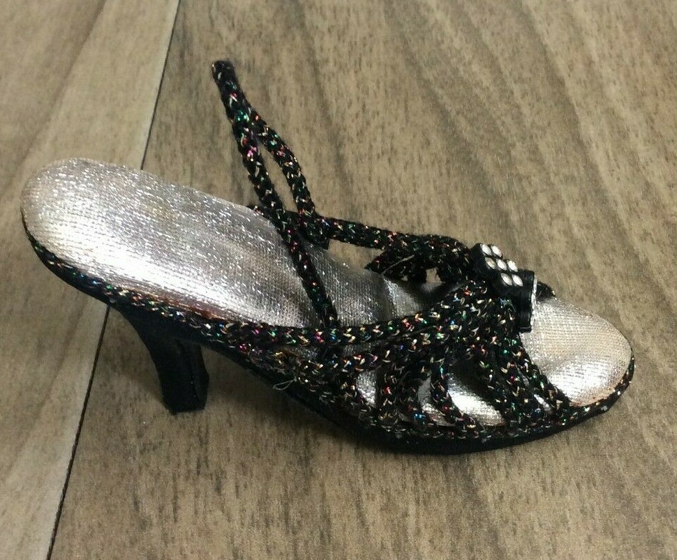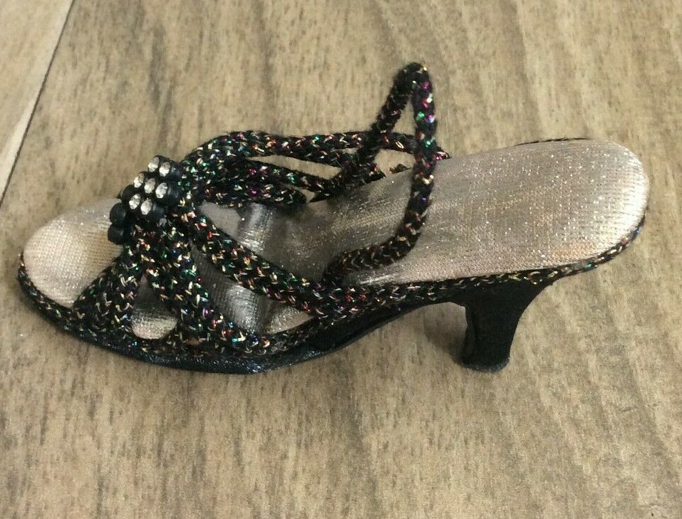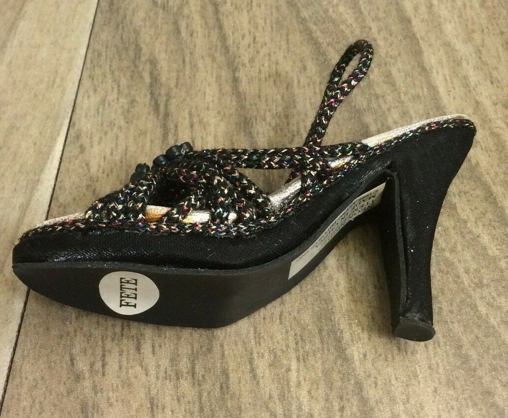 Neon Nights Miniature Black Fabric High Heel Shoe with Crystal Flowered Design, Collector's Vintage Item 1999! This is a Beautifully Designed Miniature FETE Black Fabric High Heel Shoe from 1999, with a Crystal Flowered Accent. This item is a perfect collector's item, ready to be Cherished and Enjoyed! The item will arrive with Original FETE Tag's attached. Measurements: 4 1/2" x 2 1/4" We Ship Fast, the Next Business Day, for a Quick Delivery to you. If you have any Questions, please ask prior to purchasing the item. Take a moment to visit our eBay Store, as many items are awaiting your viewing there! May you have a Wonderful Shopping Day! 32525