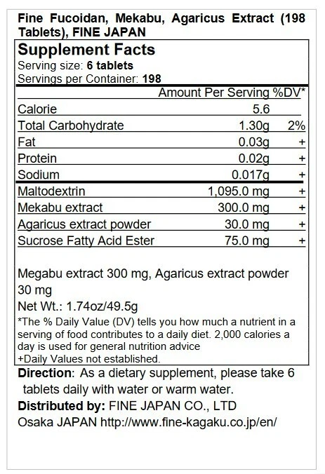 Created with Eselt - Templates for eBay Sellers FINE JAPAN Send us a message Created with Eselt - Templates for eBay Sellers Our Store Seller Profile Feedback About us Contact Created with Eselt - Templates for eBay Sellers Fucoidan- Immune system, Immunity supplement Description: Fucoidan is a special polysaccharide that is the source of slime contained in brown algae. A major feature of fucoidan is its unique slimy component. It contains many sulfate groups. In particular, mekabu seaweed is known to contain a large amount of fucoidan. This product uses fucoidan extracted from mekabu seaweed. It also contains agaricus extract from a rare and valuable mushroom. Please help us to maintain your health. Instructions: Take 6 tablets daily with cold or warm water. SUPPORTS IMMUNITY MAINTAINS HEALTHY BONES ANTIOXIDANT SUPPORT Created with Eselt - Templates for eBay Sellers Created with Eselt - Templates for eBay Sellers Links Our Store Seller Profile Feedback About us Contact More items Are you looking for something similar? See our other items! Show more items Contact Send us a message