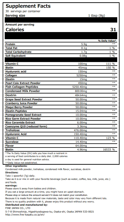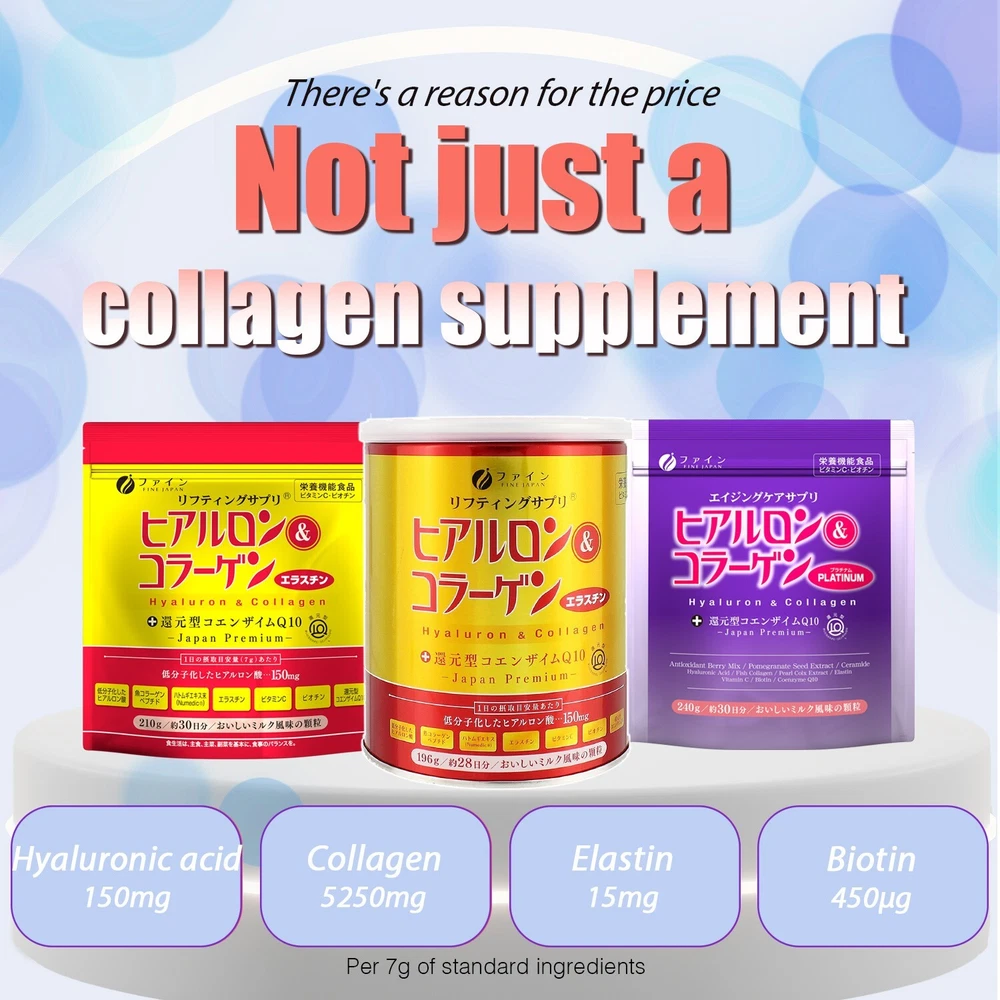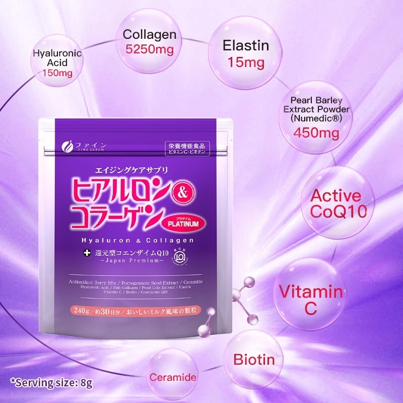 Created with Eselt - Mobile Templates for eBay Sellers FINE JAPAN Give us a call Send us a message Created with Eselt - Mobile Templates for eBay Sellers Our Store Seller Profile Feedback About us Contact Created with Eselt - Mobile Templates for eBay Sellers FINE JAPAN Hyaluronic Acid and Collagen Coenzyme Q10 Platinum powder skin beauty π Antioxidant-Rich Ingredients : Infused with Maqui Berry, Grape Seed, and Cranberry, it provides antioxidants that enhance skin radiance , nourish hair , and support joint and bone health π¦΄. Age-Defying Properties : Contains Hyaluronic Acid and Collagen to maintain youthful skin , hair , nails , and joints. Elastin aids in keeping the skin firm and helps heal acne scars π±. Energy and Strength Boosters : Includes CoQ10 for energy , and Vitamin C and Biotin for strengthening hair and nails . Ease of Use : Easily integrated into your daily routine, it can be added to various beverages like coffee , tea , milk , yogurt , or smoothies . π± Quality and Safety : Produced by Fine Japan π―π΅, a company with over 40 years of experience in manufacturing and research, holding certifications like ISO9001, GMP, and Organic JAS. Prioritizes organic and non-GMO ingredients π. Enjoy the benefits of this product for radiant skin, luscious hair, and healthy joints and bones, with the assurance of quality and convenience! ππΏπβοΈπ SKIN ELASTICITY HEALING ACNE SCARS STRENGTHEN HAIR AND NAILS Created with Eselt - Mobile Templates for eBay Sellers Created with Eselt - Mobile Templates for eBay Sellers Links Our Store Seller Profile Feedback About us Contact More items Are you looking for something similar? See our other items! Show more items Contact Give us a call Send us a message