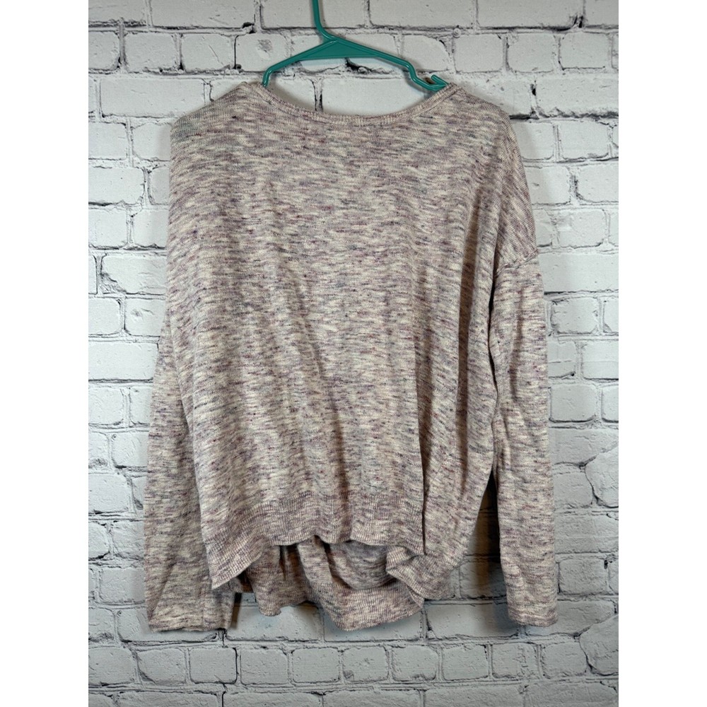 Cozy and stylish knit sweater from FP Beach, perfect for layering or wearing on its own. This oversized pullover features a unique draped front design, long sleeves, and a comfortable, relaxed fit. The soft knit fabric has a subtle heathered texture, adding visual interest to the neutral color palette. A versatile addition to any wardrobe, this sweater offers both comfort and effortless style. Keywords: FP Beach, oversized sweater, knit sweater, pullover sweater, long sleeve sweater, draped front, cozy sweater, relaxed fit, beige sweater, pink sweater, heathered sweater, casual sweater, boho sweater, bohemian sweater, Free People Our home is smoke free and pet friendly. All items stored off floors and away from pets.
