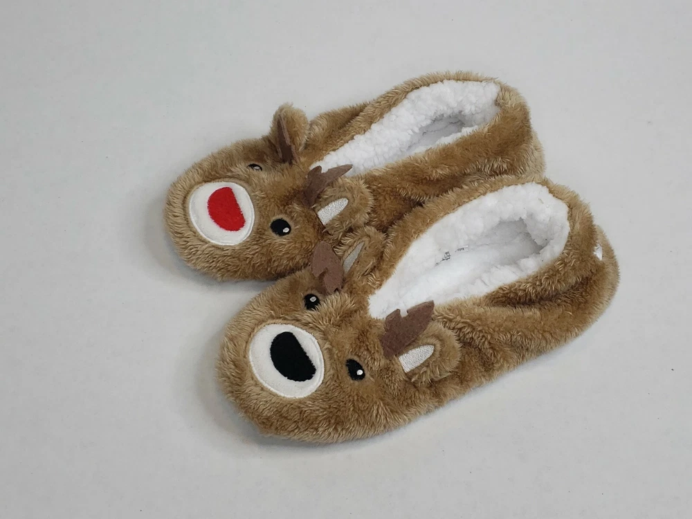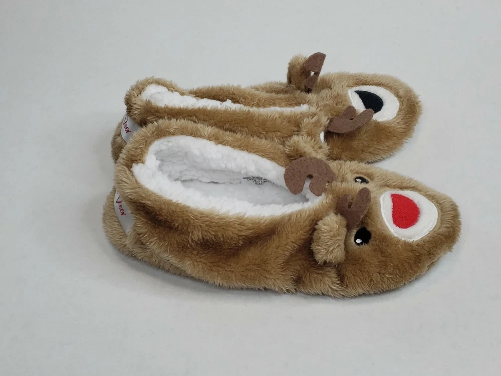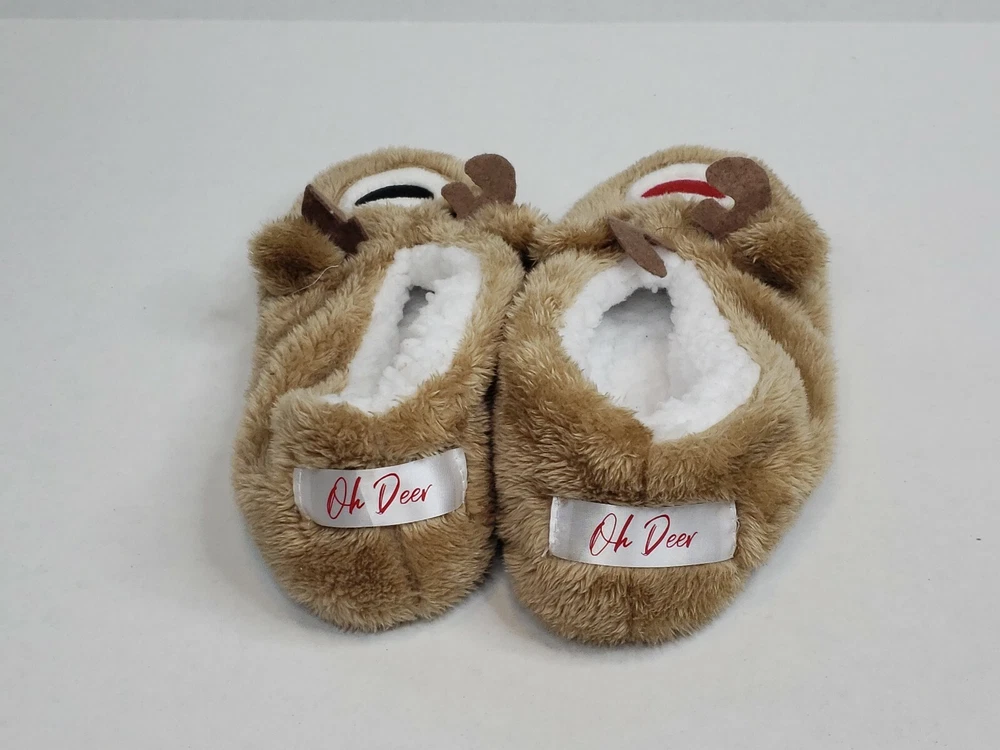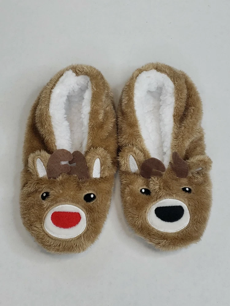 Faceplant Dreams Footsies Slippers Deer Holiday Motif Size Large. Please See All Photos For Full Item Description.