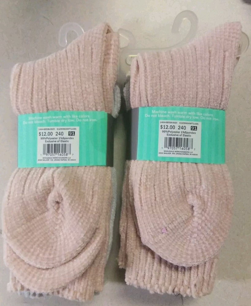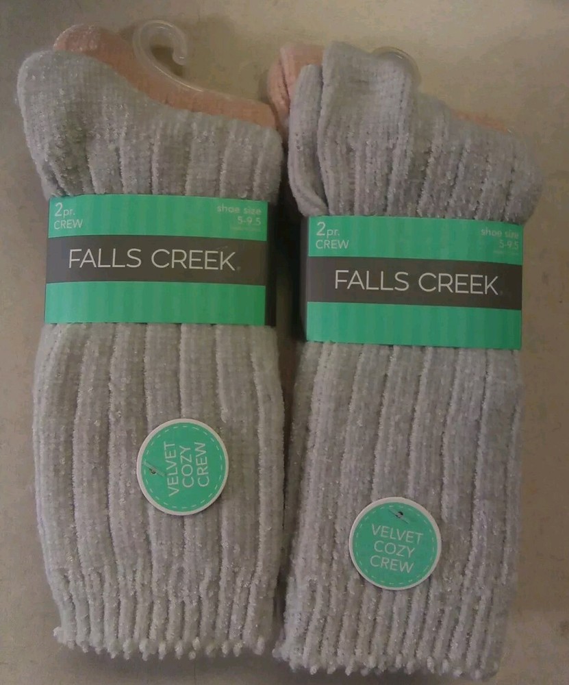 Falls Creek 4 Women's Soft Velvet Cozy Crew Socks Size 5-9.5 Color Pink & Gray...