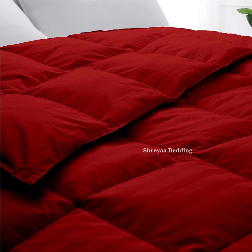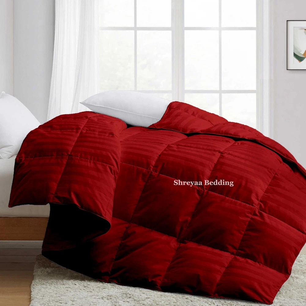 Fancy Premium Soft Stripes Burgundy Comforter Goose Down Alternative Queen Size