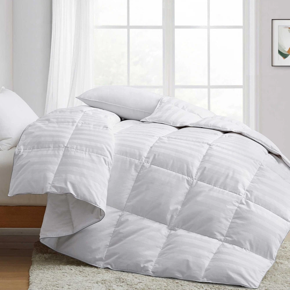 Fancy Premium Soft Stripes White Comforter Goose Down Alternative Queen Size