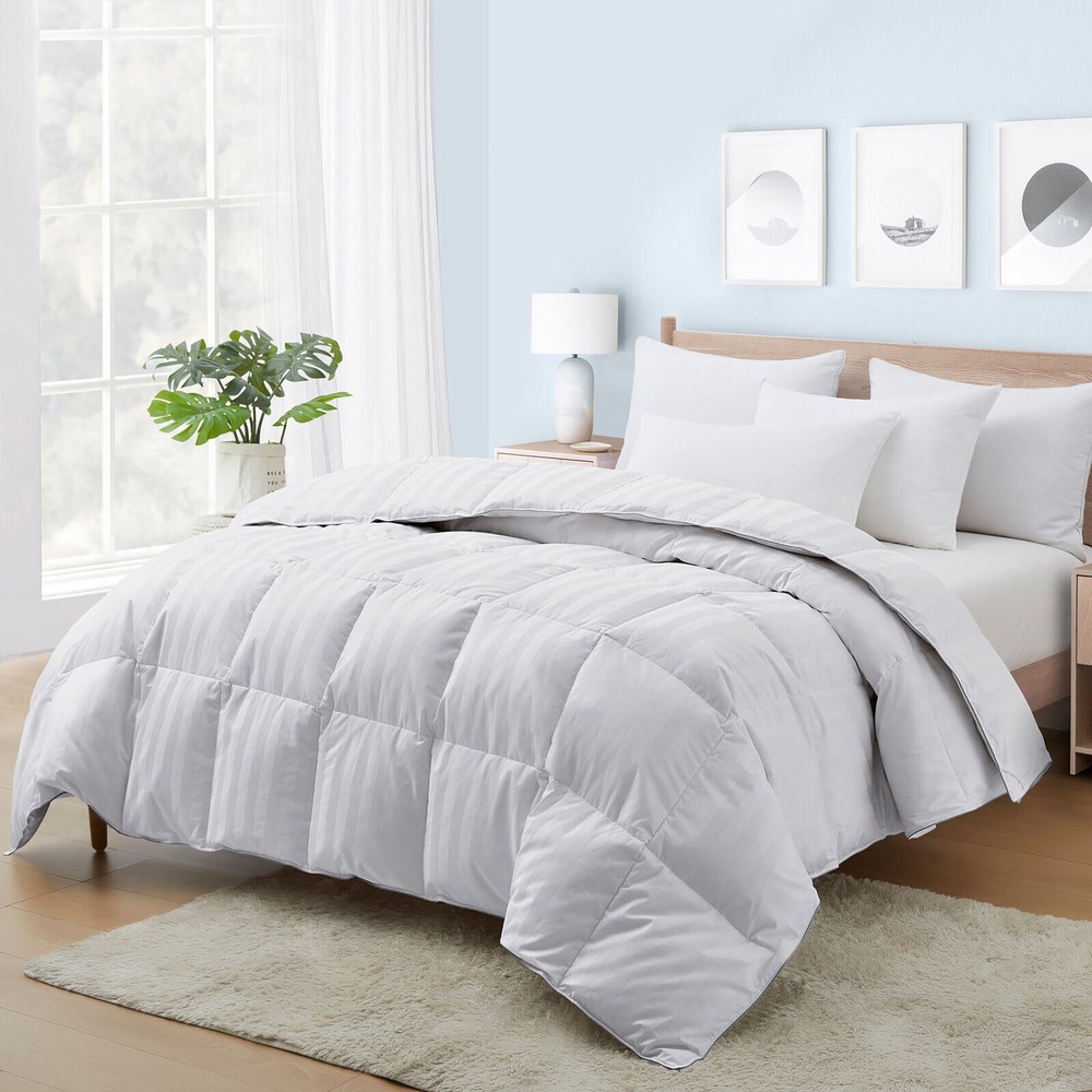 Fancy Premium Soft Stripes White Comforter Goose Down Alternative Twin Size