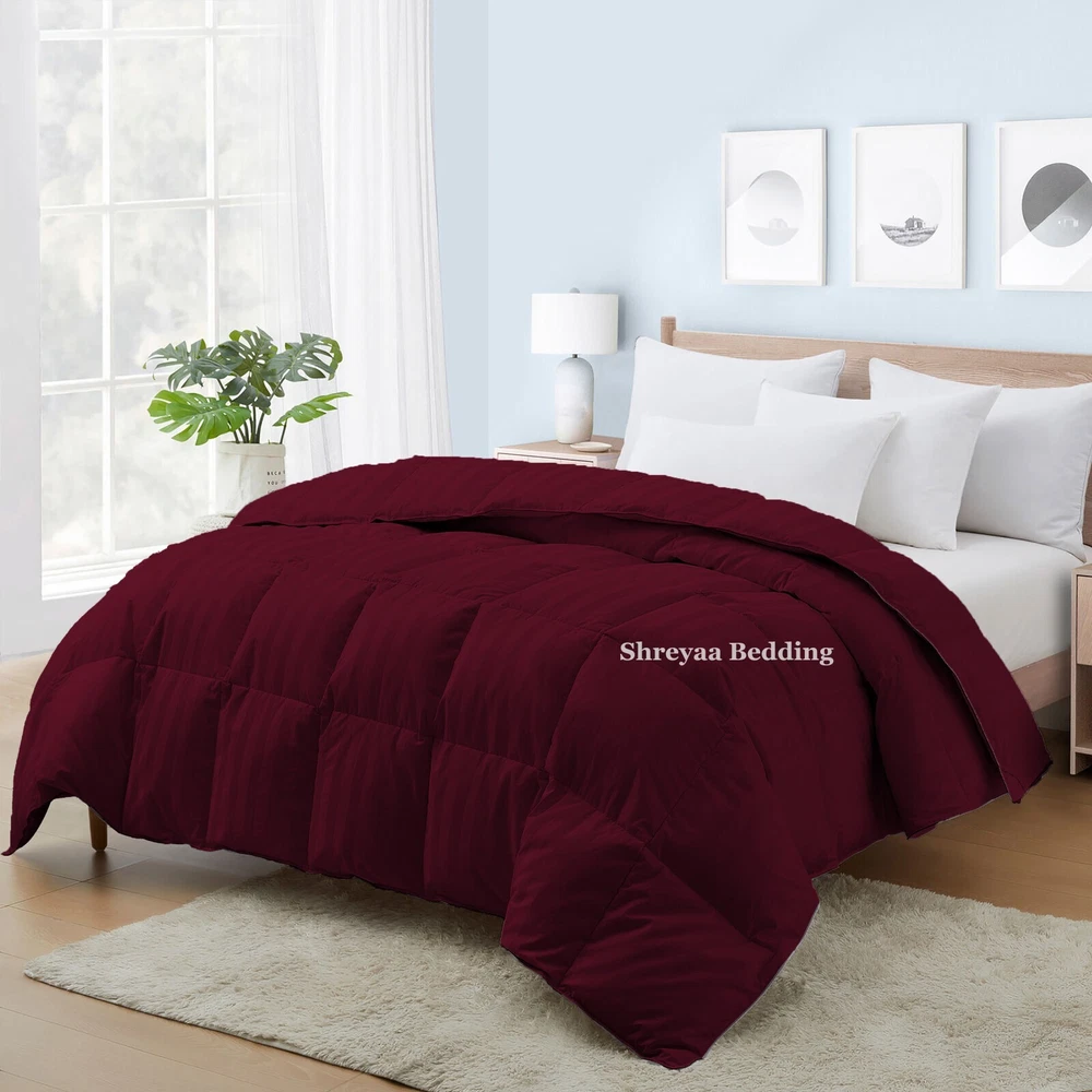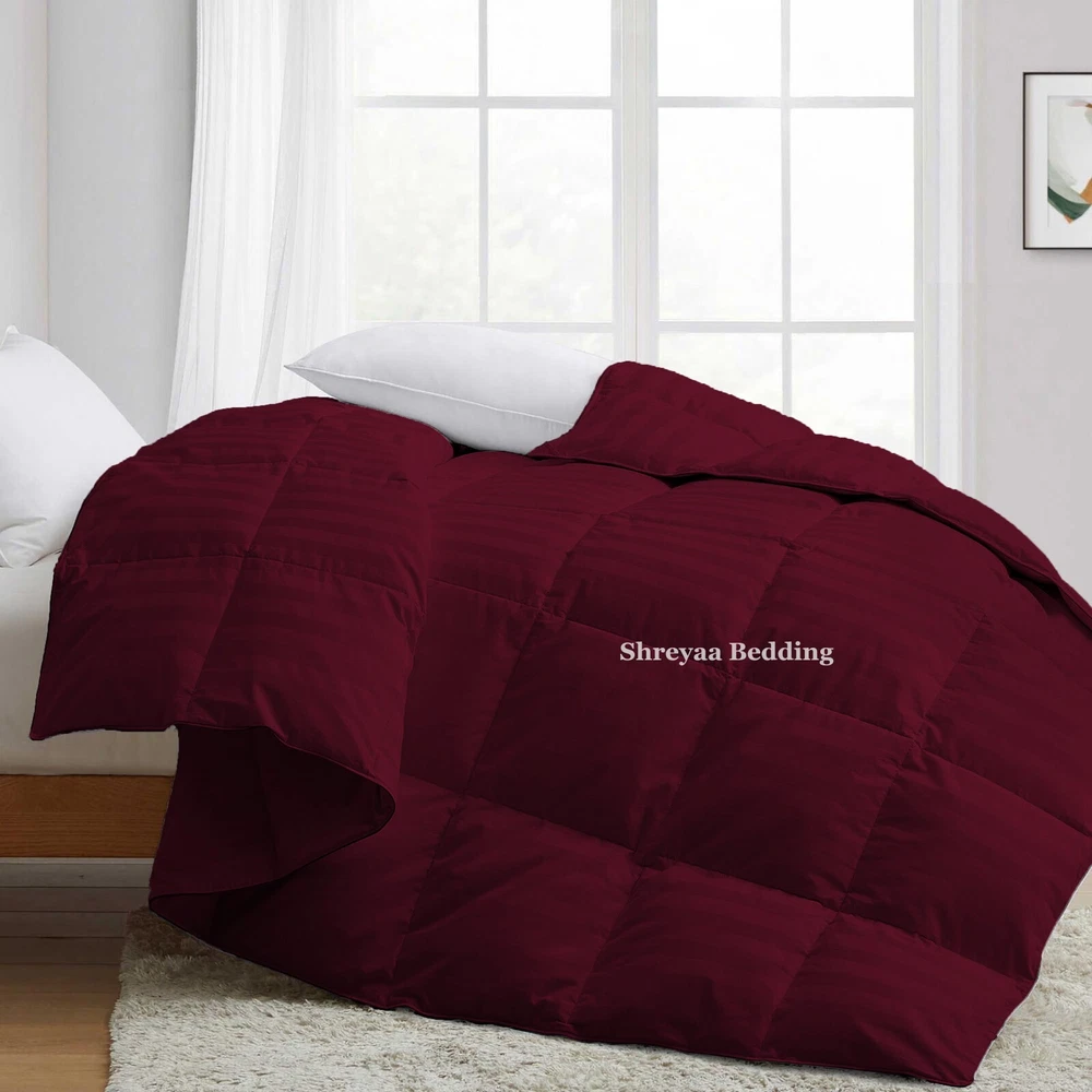 Fancy Premium Soft Stripes Wine Comforter Goose Down Alternative Queen Size