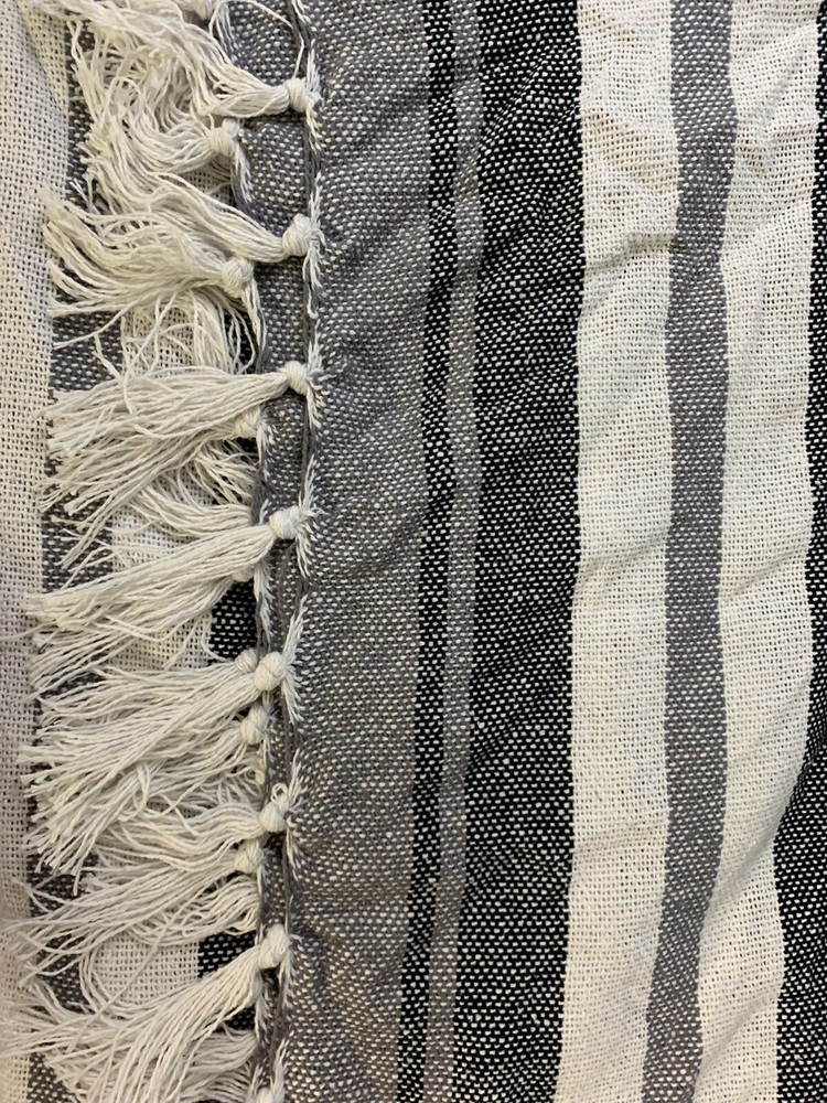 Farmhouse Woven Striped Throw Blanket with Fringe - Design Imports, 50"x60" Gray This item is new without tags. Throw is 100-percent cotton and measures 50x60 inches. Modern patterns with a decorative fringe for the perfect finish that won't unravel in the wash. This throw has a very chic and trendy look; throw over a couch or chair to add a splash of color and provide warmth on a cold night. Use DII throw blankets to stay warm, as a décor piece, over a chair or couch, to wrap housewarming gifts, as a picnic blanket, when camping, and more. We offer delightful home and kitchen products including throws, dishtowels, doormats, blankets, and more. These versatile throws are a great addition to a living room or bed room. DII offers a wide variety of throws in different colors, patterns, and materials to ensure you find the perfect one to match your vision of a perfectly balanced interior. Our throws are useful any time of the year. Keep warm in the fall and winter season, and freshen up your rooms with a pop of color during spring and summer. Keep one on your couch, chair, or bed for cozy nights by the fireside, or take outdoors for chilly summer evenings on the porch or patio or for a little picnic at your local park.