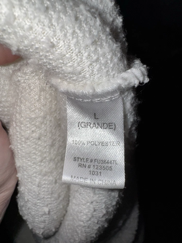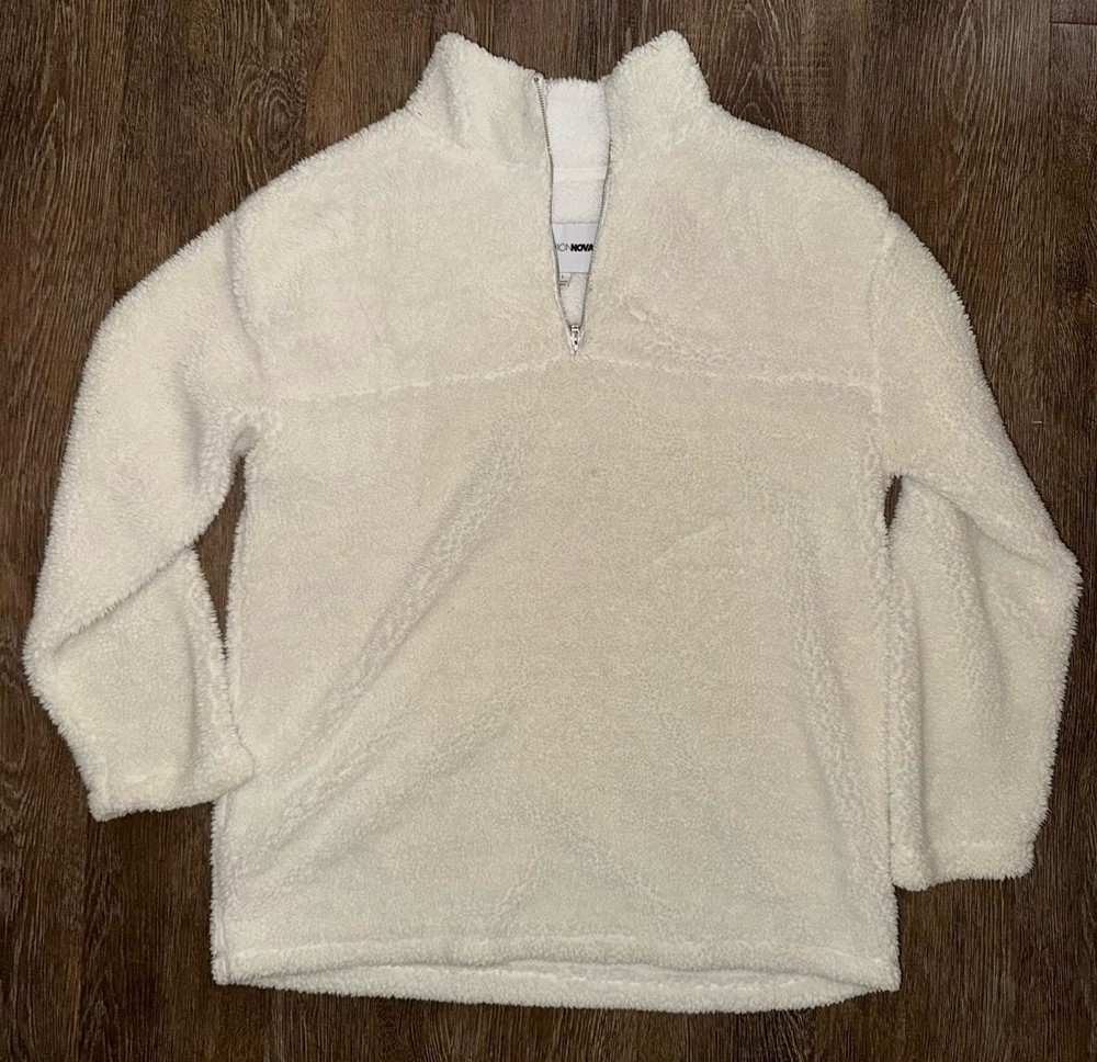 Excellent used condition Large women’s soft and comfortable white fuzzy pullover from Fashion Nova