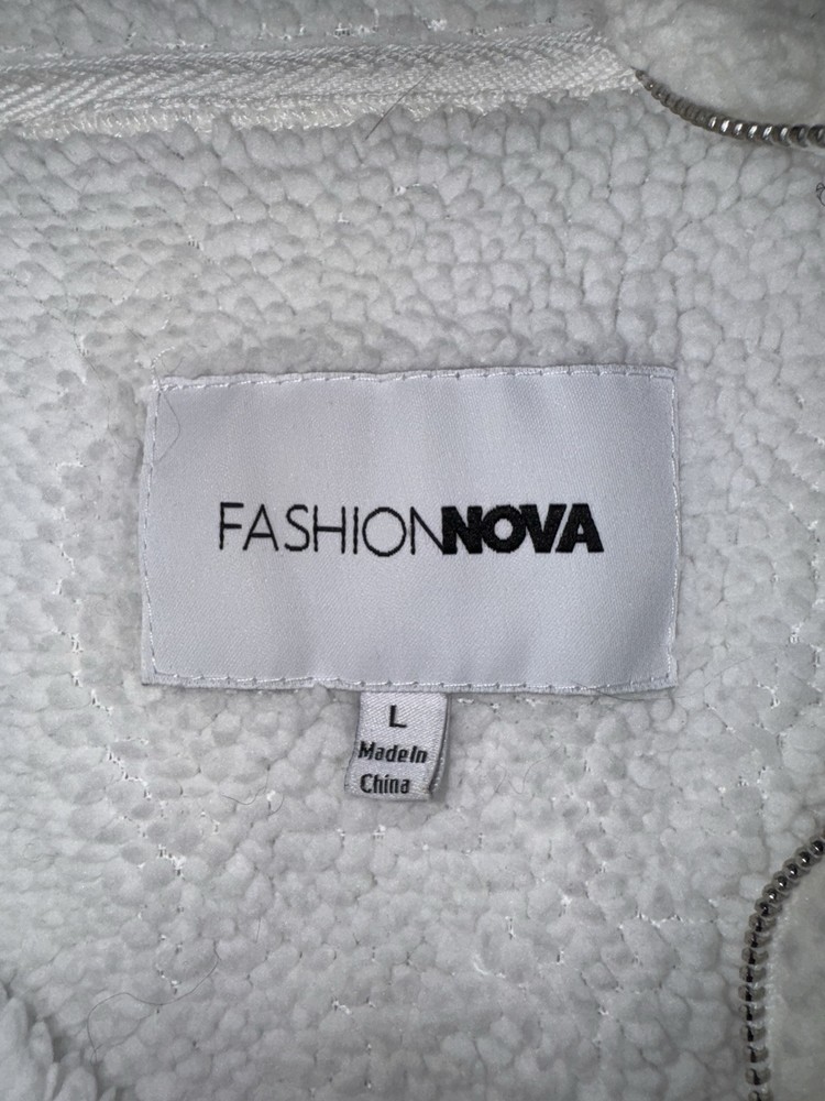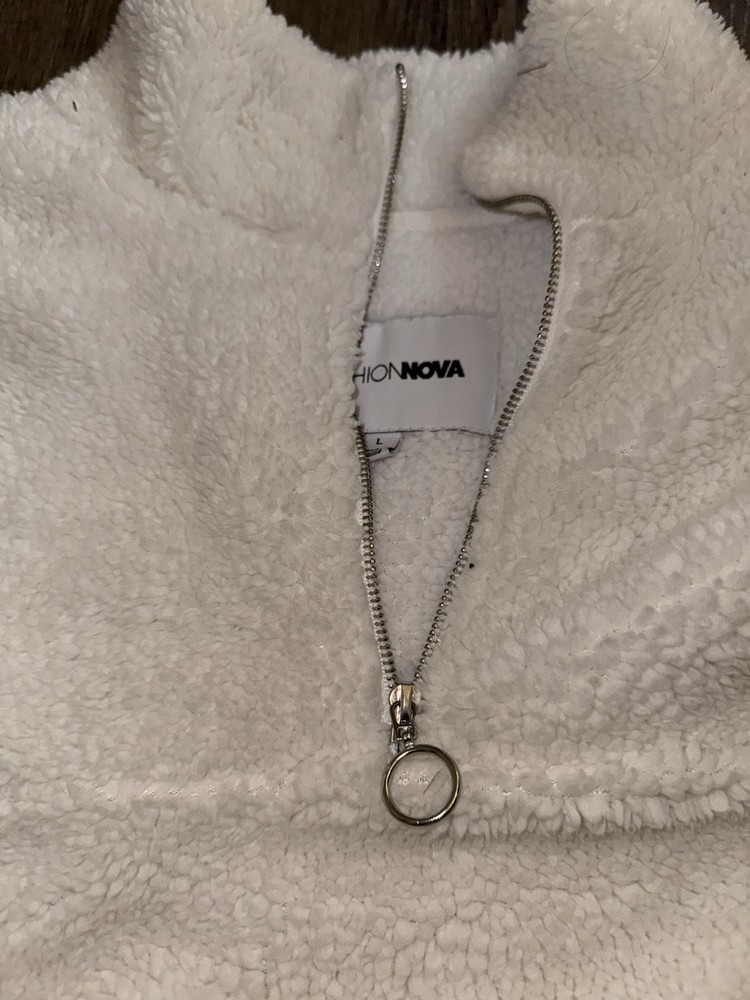 Excellent used condition Large women’s soft and comfortable white fuzzy pullover from Fashion Nova...