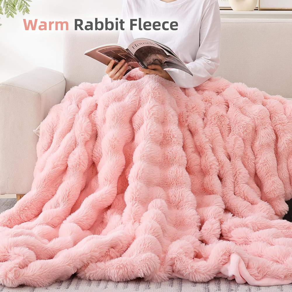 Store New Arrivals Add to Favorite View Feedback Contact Fast deliveries to the customer's home Quality customer service John Make the customers happy! Faux Fur Blanket Rabbit Fleece - Blush Pink Fluffy Blanket for Sofa, Cozy Soft Plush Throw Blanket for Couch Bed, Luxury Thick Fuzzy Couch Blanket for Winter, Comfy Bubble Blanket - 50" X 60" Description High Quality: Smoofy pink luxurious faux fur blankets are ultra-soft and cozy. Thick blanket will bring your room decor warm feeling because it's marshmallow cloud fleece. Multi-Function: The cozy couch blanket versatile size allows weighted blankets to be used in a variety of scenarios. Pink blanket for bed can be carried anywhere, kept warm at home, or used as a couch or bedding throw blanket. It is also a good birthday gift for friends. The pink fluffy throw blanket is suitable for use all year round. Home Decor: The boho design fleece throw blanket for bed adds a unique charm to your room and furniture, such as couch, living room, sofa, bed comforter decor. The solid clouds pattern offers a unique modern look. Lightweight and Attractive: The warm soft blanket is lightweight. Throw blanket for couch is easy to carry around and have good usage. The attractive design and soft material ensures comfortable feeling wherever you put thick blanket. Easy Care: No need to spend extra time to take care the fluffy blanket. Machine washable in cold water on gentle cycle, and simply sun-dry or tumble-dry on a low setting, no fading, no shedding. Product Description Smoofy Throw Blanket Double Comfort Fabric Experience unparalleled comfort with a soft throw blanket that offers a sleek, shiny side and a wonderfully cozy other side. Premium Quality Smoofy plush blankets are crafted with Triple-Anti Fleece, ensuring they are resistant to fading, shedding, and static. Skin-Friendly & Soft Texture The cozy throw blanket is incredibly soft and gentle on the skin, giving you the sensation of lying on a cloud. Thick and Warm Smoofy minky blanket quickly lock in warmth for you in bed, couch, sofa, or living room, no longer cold, and keep you warm the whole night. Smoofy Throw Blanket & Bedding Set Add to Cart Customer Reviews 4.6 out of 5 stars 296 4.6 out of 5 stars 363 4.4 out of 5 stars 1,978 4.4 out of 5 stars 206 4.6 out of 5 stars 1,944 Price $29.99 $ 29 . 99 — $69.99 $ 69 . 99 — — Features Fluffy, Fuzzy, Soft Fluffy, Fuzzy, Soft Fluffy, Fuzzy, Soft Soft, Breathable, Durabel Soft, Breathable, Durabel Material Polyester Microfiber Polyester Polyester Polyester Size Available 50*60/60*80 Twin/Full/Queen/King Twin/Full/Queen/King Twin/Full/Queen/King Twin/Full/Queen/King Product Care Instructions Machine Wash, Do Not Bleach Machine Wash, Do Not Bleach Soft, Breathable, Durabel Machine Wash, Do Not Bleach Machine Wash, Do Not Bleach Pieces 1 3 3 7 3 Machine Washable ✔ ✔ ✔ ✔ ✔ Applicable Occasion Couch, Bed, Sofa, Living Room Bed Room Bed Room Bed Room Bed Room Available Color 5+ Colors 5+ Colors 5+ Colors 5+ Colors 5+ Colors Item model number QL-FauxFurBlanket Style Bohemian Number of Items 1 Pattern Solid Country of Origin China Blanket Form Throw Blanket Theme Bohemian, Rabbit Product Dimensions 60"L x 50"W Material Polyester Model Name QL-FauxFurBlanket Seasons All Age Range (Description) Adult Animal theme rabbit Fabric Type Faux Fur & Fleece Item Weight 3.39 pounds Fill Material Polyester Special Feature Bagged Fabric Warmth Description Lightweight Sport Camping Color Pink Recommended Uses For Product Napping, Camping, Travel, Working, Hiking, Backpacking Included Components 1 Blanket (50" x 60") Product Care Instructions Machine Wash Size Throw(50" x 60") ABOUT US We offer the best prices around on high quality products. Our E-store includes media such as books, movies, music and games while offering electronics, toys, sporting apparel, clothing, tools, general home, garden items and more. SHIPPING We are always working hard to ensure your package arrives as soon as possible. Please understand that some factors like weather, high postal traffic, and the performance of shipping companies are outside of our control. We offer free shipping to the lower 48 states and ship within 2 business days of payment, usually sooner. We do not accept P.O. Boxes. Please provide a physical address. For shipping outside of the continental USA, we only use eBay's Global Shipping Program. The item is shipped to KY and then sent to the rest of the world. International customers are responsible for all duties and taxes. Continue to 'check out' to calculate costs for shipping the item to your country. Messages regarding eBay's Global Shipping Program MUST be directed at eBay EXCLUSIVELY. RETURNS We offer a 30-Day Return Policy on items in which you are not completely satisfied with. You have the option of a full-refund or an exchange of the item. No returns are available on items shipped outside of the USA PAYMENT We accept PayPal. CONTACT US This page content is yet to come Please ad us to your favorite seller and visit again later Thank You CUSTOMER SATISFACTION We try our very best to make sure every customer is completely satisfied. If there's a problem, message us! We're happy to help. WE ACCEPT
