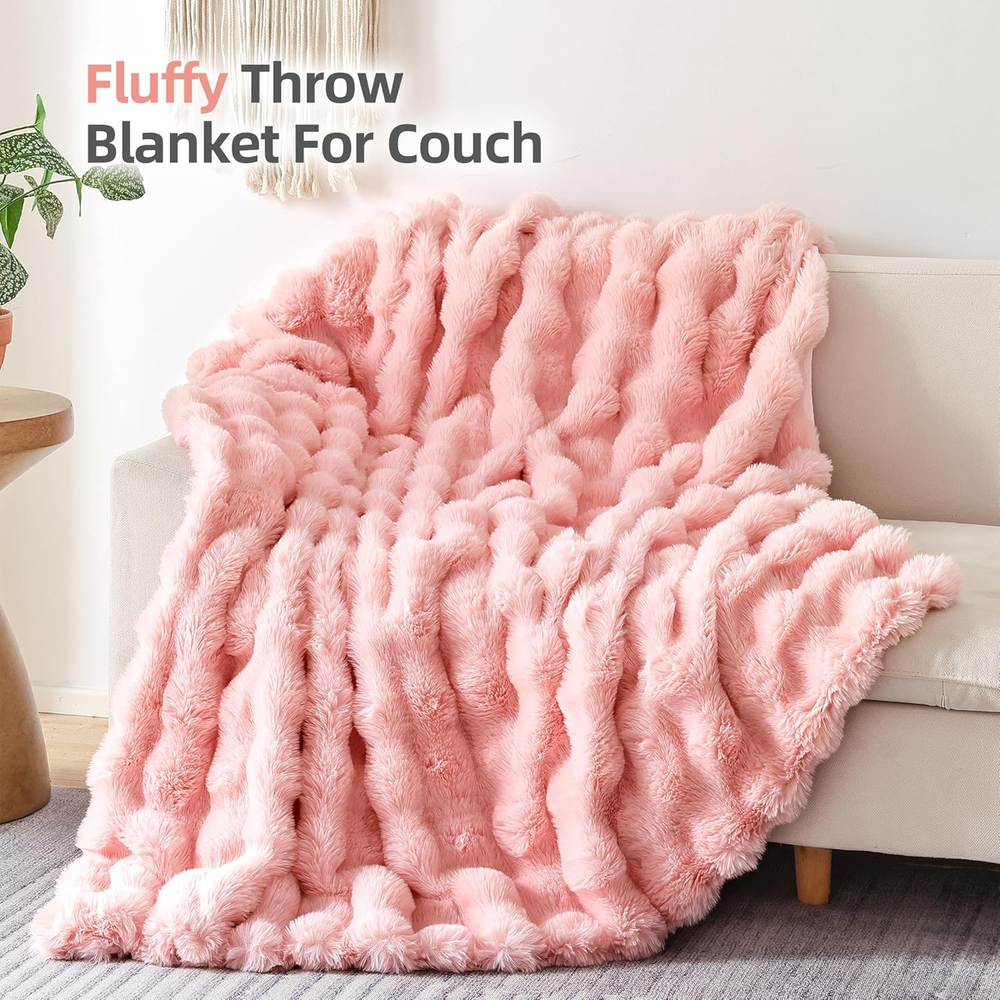 This faux fur blanket is incredibly soft and cozy—perfect for snuggling on the couch or bed! The plush material feels luxurious, and the blush pink color adds a cute, warm touch to any room. It’s thick enough to keep you warm in winter but still lightweight. Great quality and super comfortable—definitely worth it!