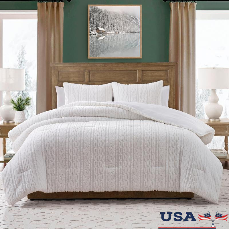 You may also like 1/2HP Submersible Water Pump 3500GPH Utility Pump Pool Garden Pond Draining New 53.1 USD 55.89 USD Free shipping 5% off Stainless Steel 5QT Colander Straining Rinsing Draining Pasta Fruits Vegetables 15.29 USD 16.09 USD Free shipping 5% off Canned Bean Sprouts 4 Pack Organic Asian Vegetable Crunchy Mealtime Addition New 8.95 USD 9.42 USD Free shipping 5% off Wall Mount Laundry Sink Faucet 2 Handle Swivel Spout Brass Chrome Utility New 45.69 USD 48.09 USD Free shipping 5% off 4 Piece Nonstick Bakeware Set Heavy Duty Carbon Steel Kitchen Essentials New 39.39 USD 41.46 USD Free shipping 5% off Commercial Folding Chair W/ Armrests Indoor Outdoor Storage Lightweight 2 Pack 38.87 USD 40.92 USD Free shipping 5% off Quad Dewormer Chewable Tablets Large Dogs Broad Spectrum Anthelmintic US 64.19 USD 67.57 USD Free shipping 5% off 2.5GPM Dual Shower Head Handheld Rainfall High Pressure Combo 9 Spray Settings 51.52 USD 54.23 USD Free shipping 5% off Concrete Sealer 1 Gallon Water Salt Repellent Breathable Low VOC Protection New 86.3 USD 90.84 USD Free shipping 5% off Countertop Microwave Oven 900W Child Safety Lock 10 Power Levels Auto-Cook Menus 106.4 USD 112.0 USD Free shipping 5% off Digital Ice Cream Maker Quick Freeze No Salt Homemade Desserts Non-Stick Bowl US 55.57 USD 58.49 USD Free shipping 5% off Hanging Planter Outdoor W/ Coco Liner Metal Wire Flower Basket Pots Holder Deck 70.39 USD 74.09 USD Free shipping 5% off Give your bedroom décor a classic-cozy feel with the Anabel Carved Fur 3-Piece White Faux Rabbit Fur Comforter Set. Perfect for keeping warm on chilly nights, this textured comforter features cable knit-inspired braided patterns carved on blissfully faux rabbit faux fabric. Each 3-piece bed set includes a comforter and coordinated pillow shams to complete the look. You can keep this bed set looking and feeling fresh by machine washing it gently and separately in cold water with similar colors and tumble drying on a low setting as needed. 3-piece faux fur comforter set Features textured cable knit-inspired patterns Dimensions: King set includes 1 comforter (106 x 92 inches), 2 shams (20 x 36 inches) Fabric details – Face: Carved faux rabbit fur, Reverse: Soft-wash microfiber fabric Care Instructions: Machine washable and dryer safe. Wash in cold water. Complete the look with decor collections (sold separately) Double-Sided Electric Heating Pad Back Pain Relief 6 Heat Settings Auto Off New 45.69 USD 48.09 USD Free shipping 5% off 3D Wall Panels Diamond Texture 33 Pack PVC Interior Décor Living Room Office New 67.92 USD 71.49 USD Free shipping 5% off 4.3" Digital Coin Microscope1000X Magnification with 8 Ajustable LED Fill Lights 49.39 USD 51.99 USD Free shipping 5% off Chemical Free Wallpaper Remover Two Steam Plates Long Runtime Lightweight Design 89.7 USD 94.42 USD Free shipping 5% off Variable Temperature Heat Gun 1200W Hot Air Tool Crafts Paint Shrink Wrap New 67.92 USD 71.49 USD Free shipping 5% off 11 Inch 4.4QT Stainless Steel Frying Pot W/ Temperature Control & Drain Rack New 44.45 USD 46.79 USD Free shipping 5% off Heavy Duty Garden Tool Organizer Free Standing Rack Garage Storage Long Tools US 49.36 USD 51.96 USD Free shipping 5% off 24 Inch Dog Pet Playpen W/ Door Durable Easy Assembly Indoor Outdoor Use 98.79 USD 103.99 USD Free shipping 5% off Cordless Mini Chainsaw 6 Inch Portable Electric Cutting Tool 2 Batteries New 48.12 USD 50.65 USD Free shipping 5% off Stackable Soup Bowls W/ Handles Ceramic Oven Safe Chili Beef Stew Set of 4 New 53.1 USD 55.89 USD Free shipping 5% off Vintage Wood Egg Holder Storage Tray W/ Metal Stand & Chalkboard Label New 49.39 USD 51.99 USD Free shipping 5% off Insulated 16oz Paper Hot Coffee Cups 500 Count Ripple Double Poly Lined New 112.58 USD 118.51 USD Free shipping 5% off