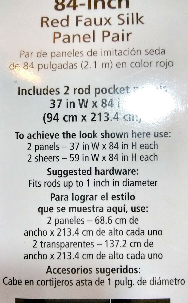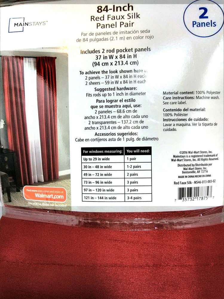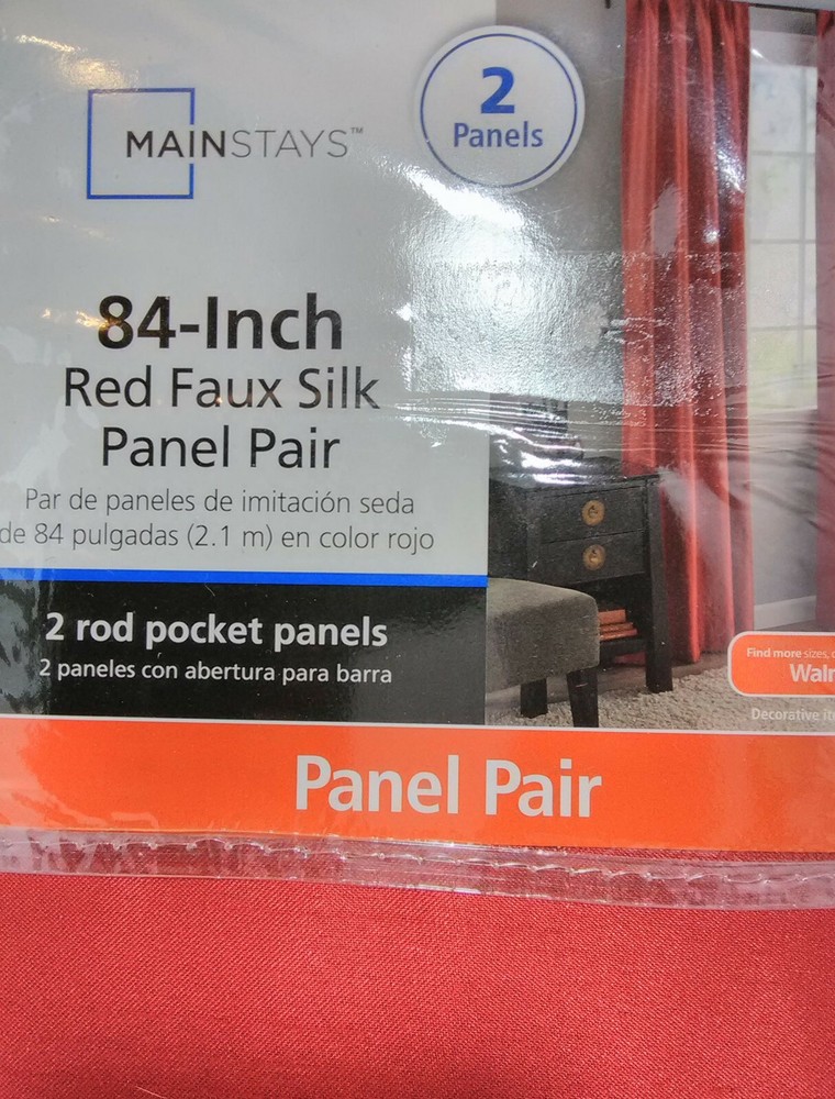 The item you will be receiving is for 1 Classics Faux Silk Rod Pocket Panel Pair Red 2-37/84" Curtains INVENTORY NUMBER 395902 BOX 78 MEASUREMENTS: Faux Silk Rod Pocket Panel Pair Red (soft orange-red family) 2-37/84" (1 Package) Fits up to 2-2.5" Curtain Rod One Pair Fits a Window up to 29" 3-4 Pairs Fits 121-144" Mainstays Color may vary due to lighting PLEASE READ ALL INFORMATION AND SEE ALL PHOTOS FOR THE EXACT DESCRIPTION OF YOUR ITEM. Please ask any questions you have before you make your purchase. USA CUSTOMERS: YOUR ITEM WILL BE SENT OUT PRIORITY SHIPPING INTERNATIONAL CUSTOMERS: YOUR ITEM WILL BE SENT PRIORITY SHIPPING TO THE GLOBAL SHIPPING PROGRAM.PLEASE REFER TO EBAY'S SHIPPING CHART FOR YOUR INTERNATIONAL CHARGES. THANK YOU FOR VISITING MY FAMILY SITE