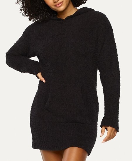The Felina Denali Cozy Knit Hooded Tunic in black is a stylish and comfortable sweater for women. Made of knit fabric, this tunic features a hood and is designed in a tunic style, making it perfect for lounging or casual wear. The size is medium, and it is brand new with tags, ready to be added to your wardrobe for cozy days at home or out and about. Length: Approx. 32" long Special Features: Kangaroo pocket at front Neckline: Hooded Closure: Pullover styling Sleeve Length: Long sleeves Polyester/nylon Machine washable Imported