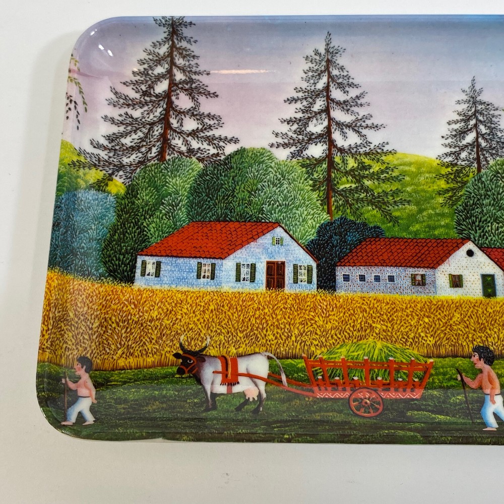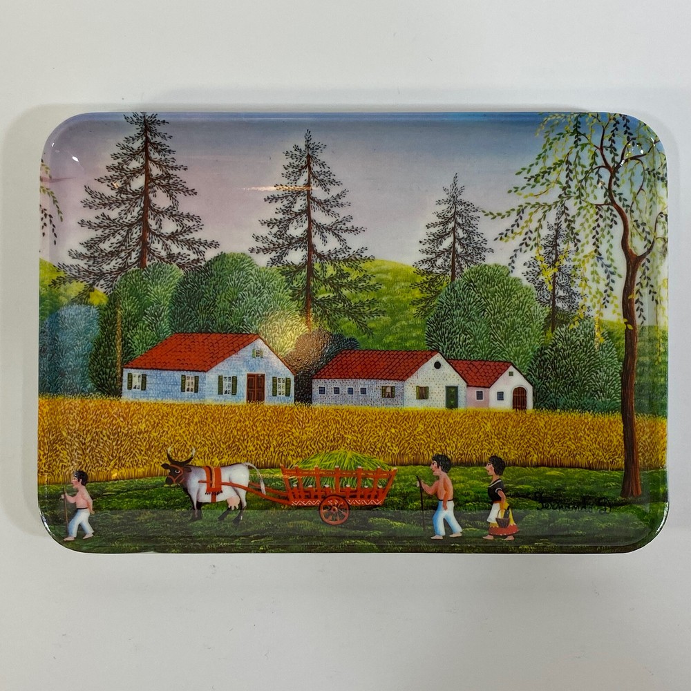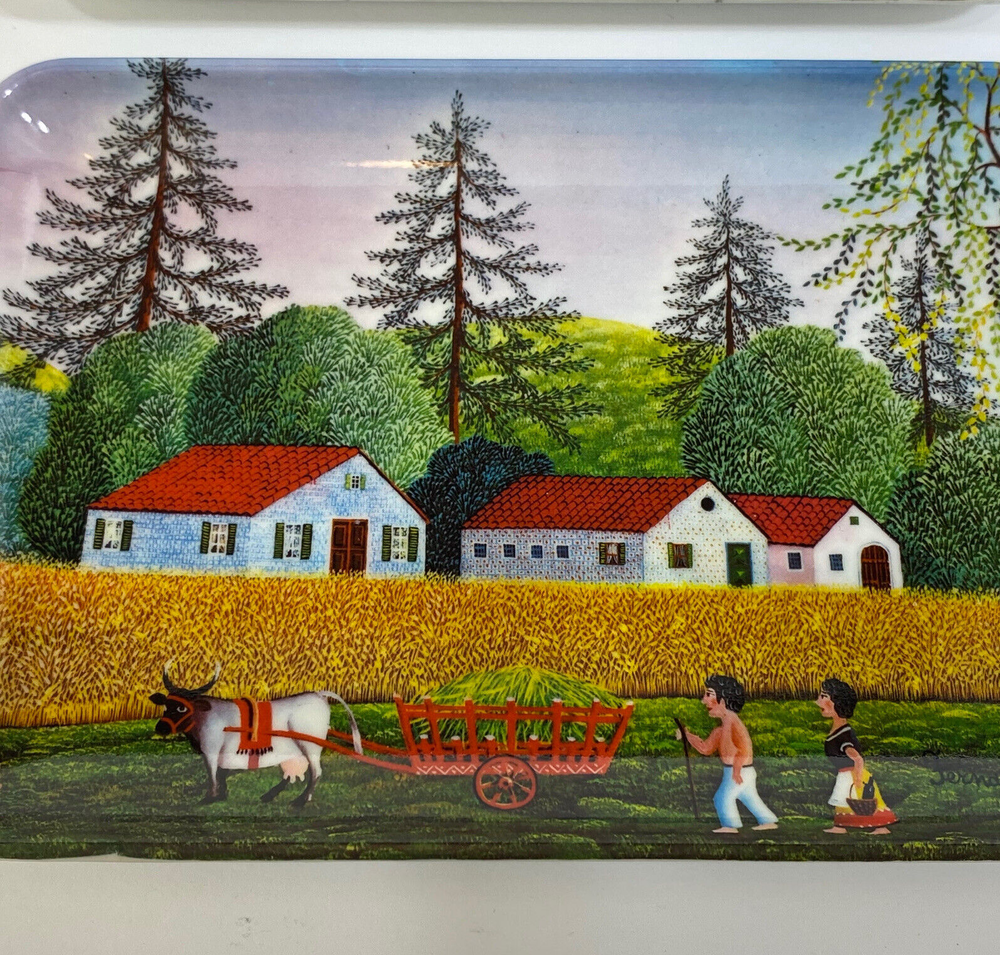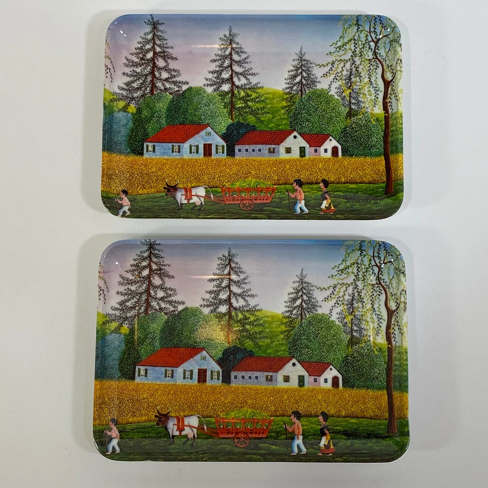 Fernando D Art Farm Scene Harvest 2 x Trinket Tray Melamine Design Imports Italy Lot of 2 Trinket Trays Measurements: 5 7/8" x 4 1/8"